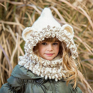 ebay速卖通热销手工钩针帽儿童款动物耳朵毛线帽子围脖连帽小熊帽