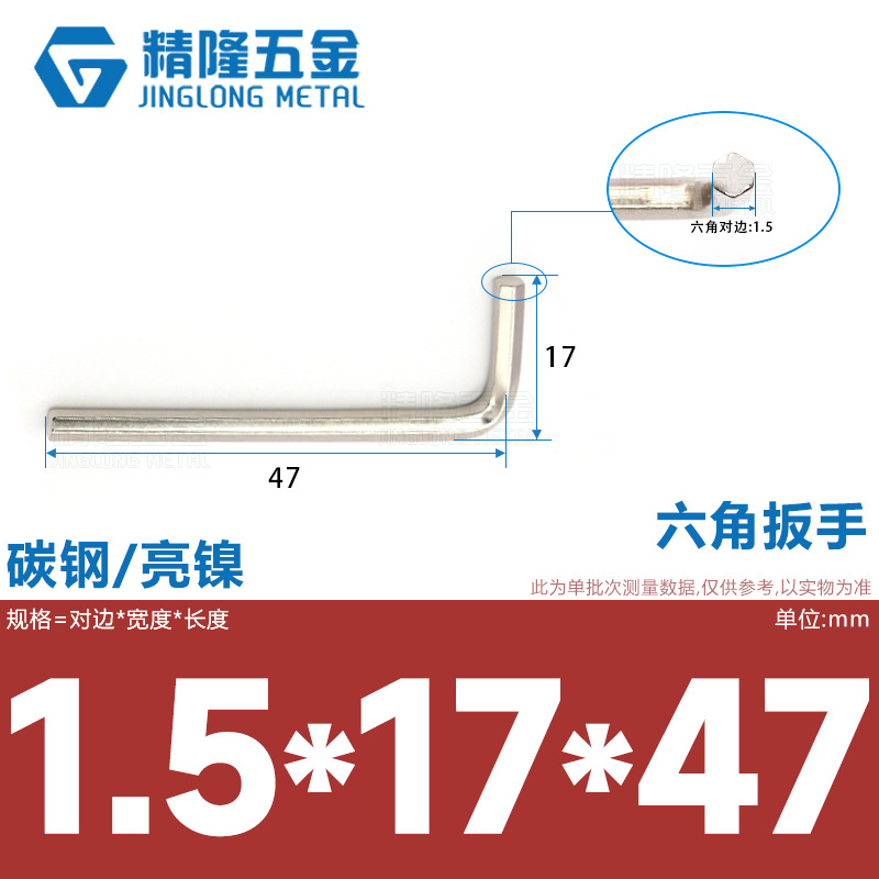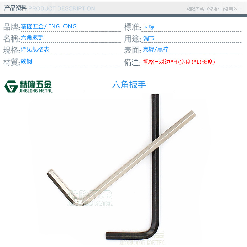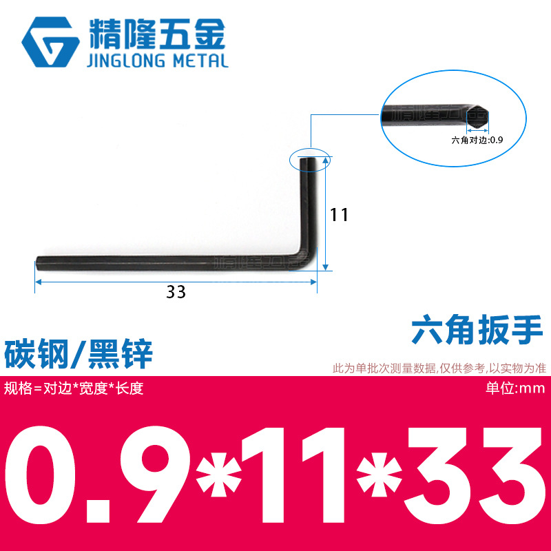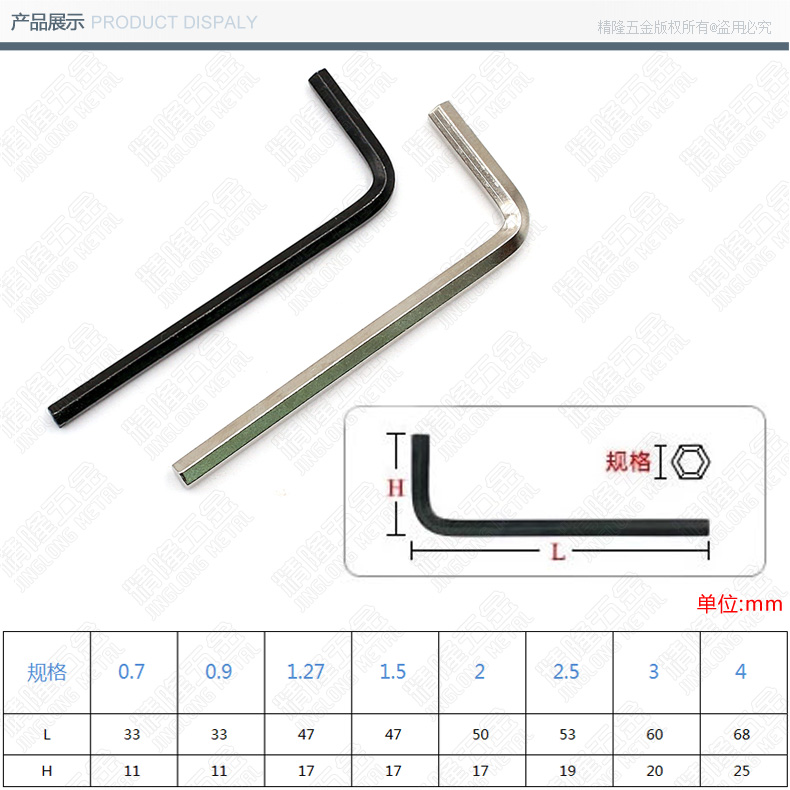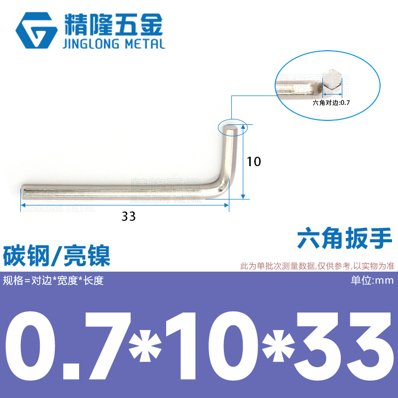 육각 렌치 0.7/0.9/1.27/1.5/2.0/2.5/3 7 자형 L 렌치 탄소강 니켈 도금/블랙 아연