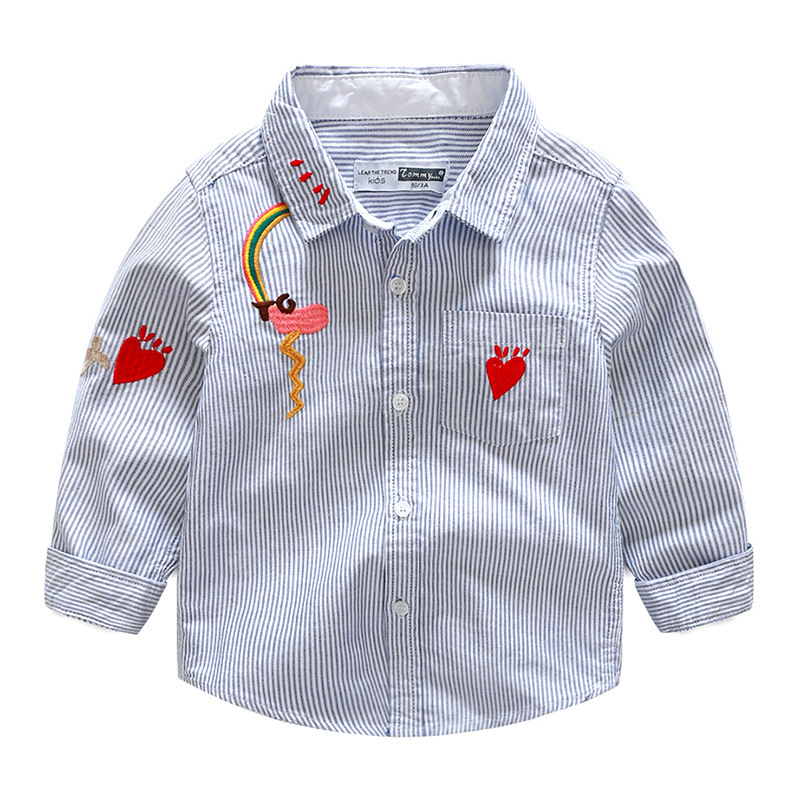 새로운 봄 대외 무역 오리지널 주문 브랜드 아동 의류 소년 소녀 어린이 스트라이프 옥스포드 자수 무지개 긴 소매 셔츠스토어 가기