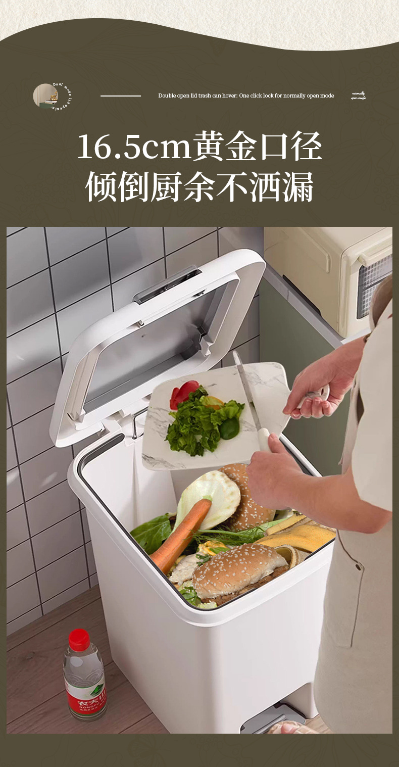 더블 아트 쓰레기통 대형 대용량 야외 플라스틱 쓰레기통 호텔 주방 발로 작동하는 쓰레기통 가정용