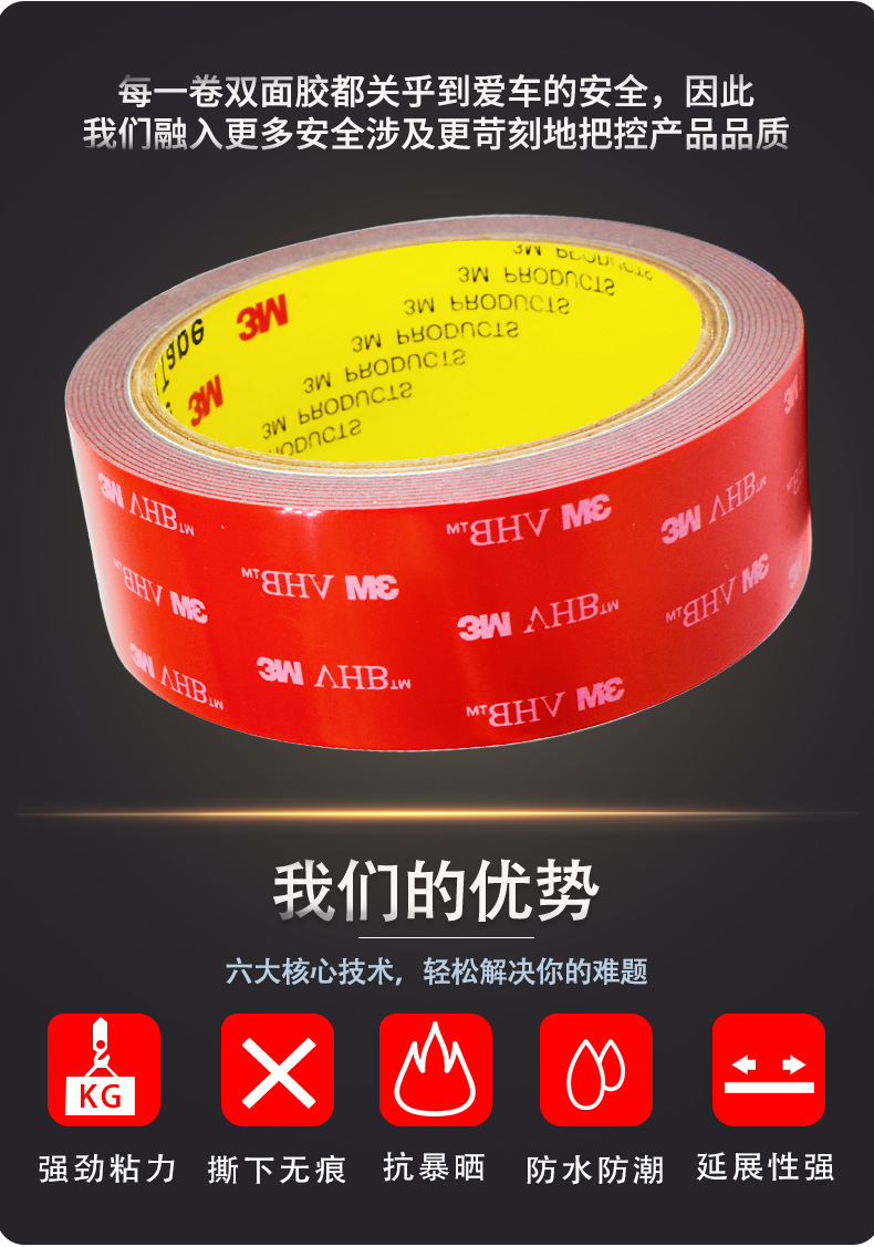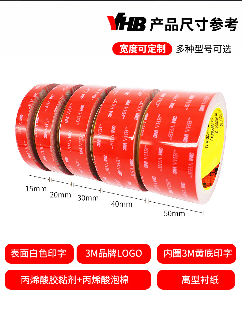 3m双面胶 批发车用泡棉强力胶贴挂钩相框防水高粘无痕3m胶带定制