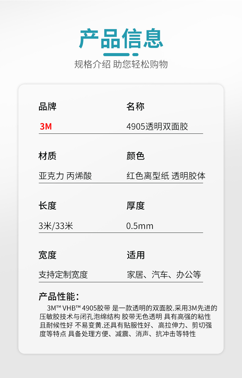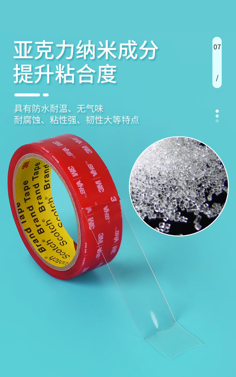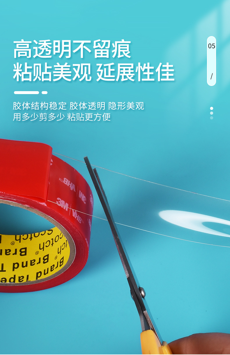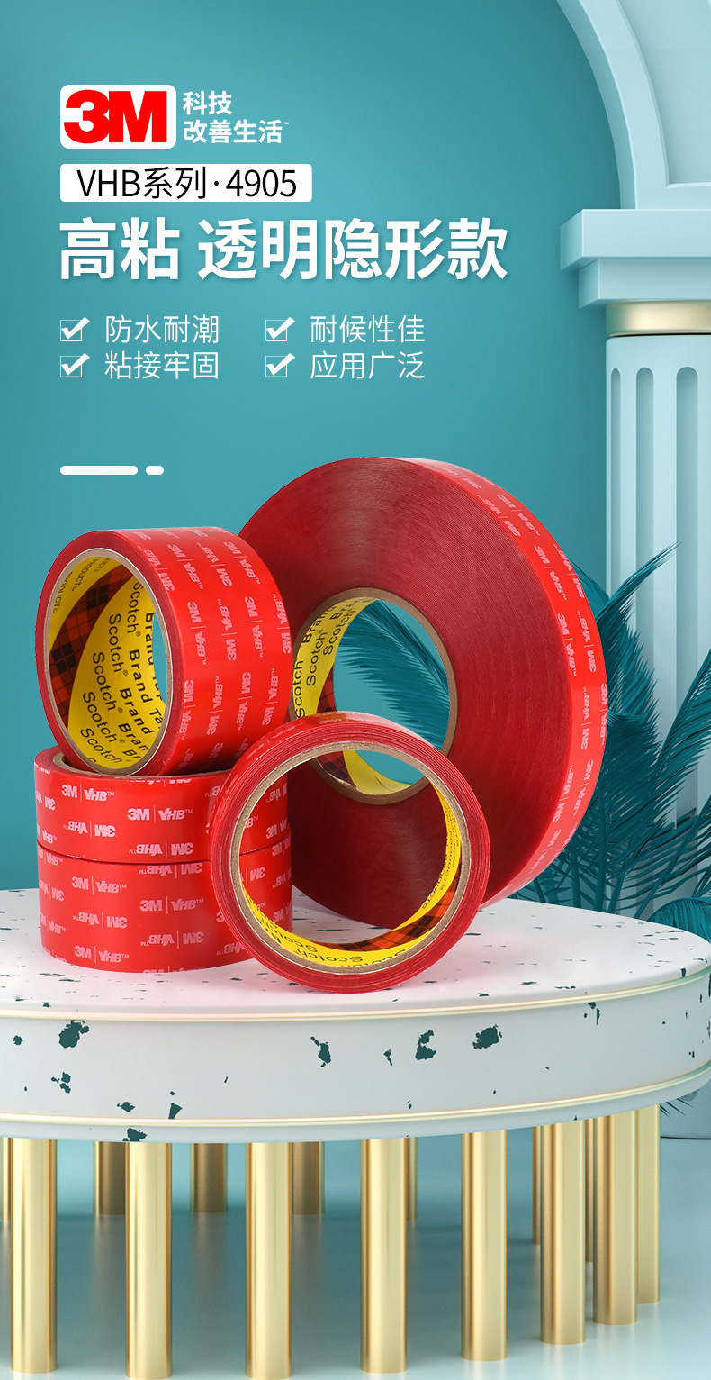 3m4905 양면 접착 높은 스틱 투명 아크릴 고온 방수 강한 나노 양면 테이프 장식 욕실스토어 가기