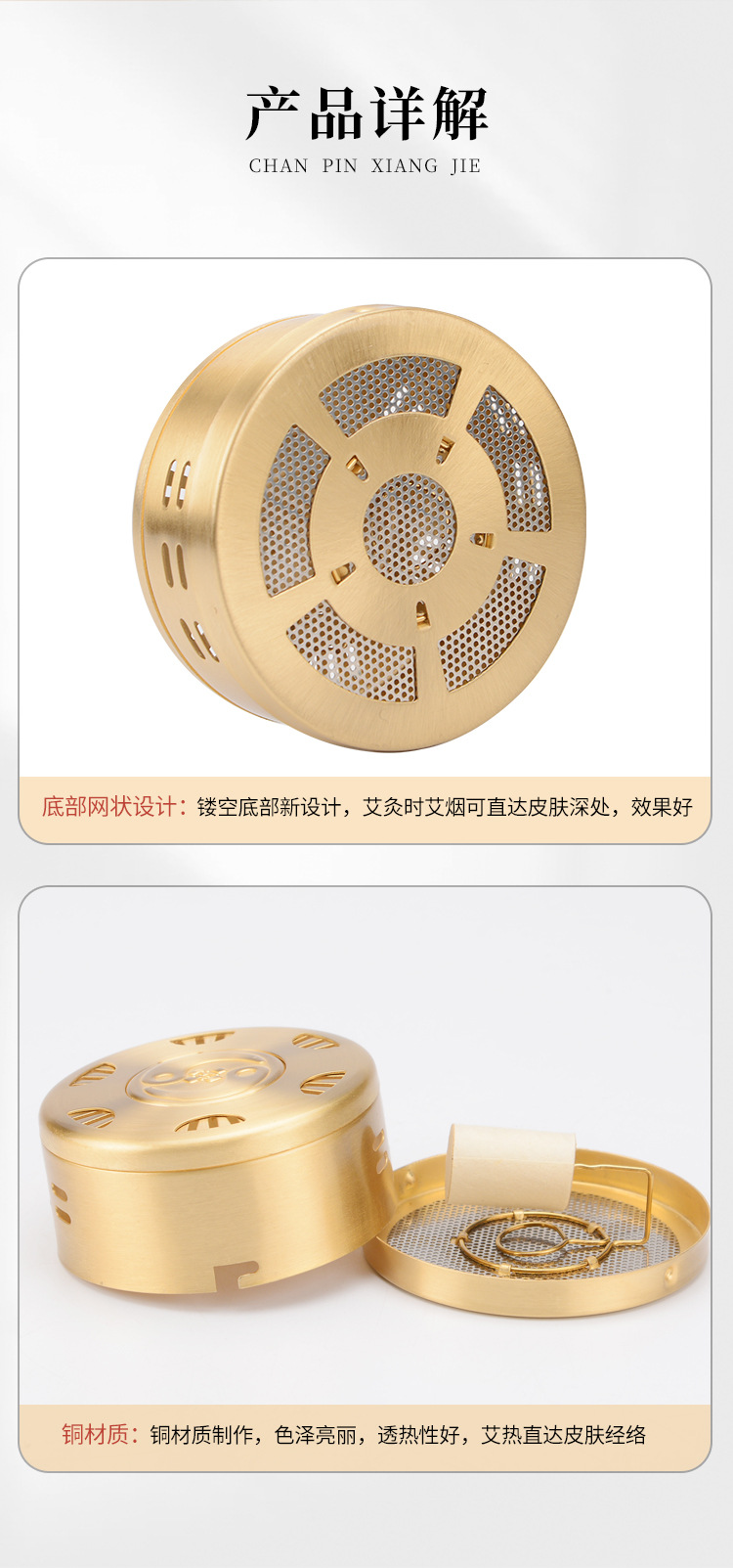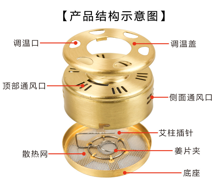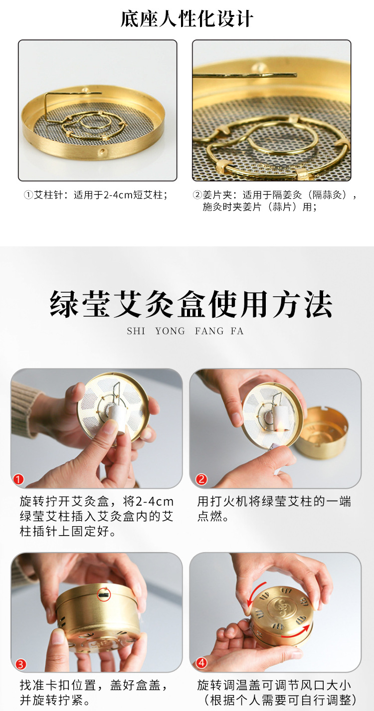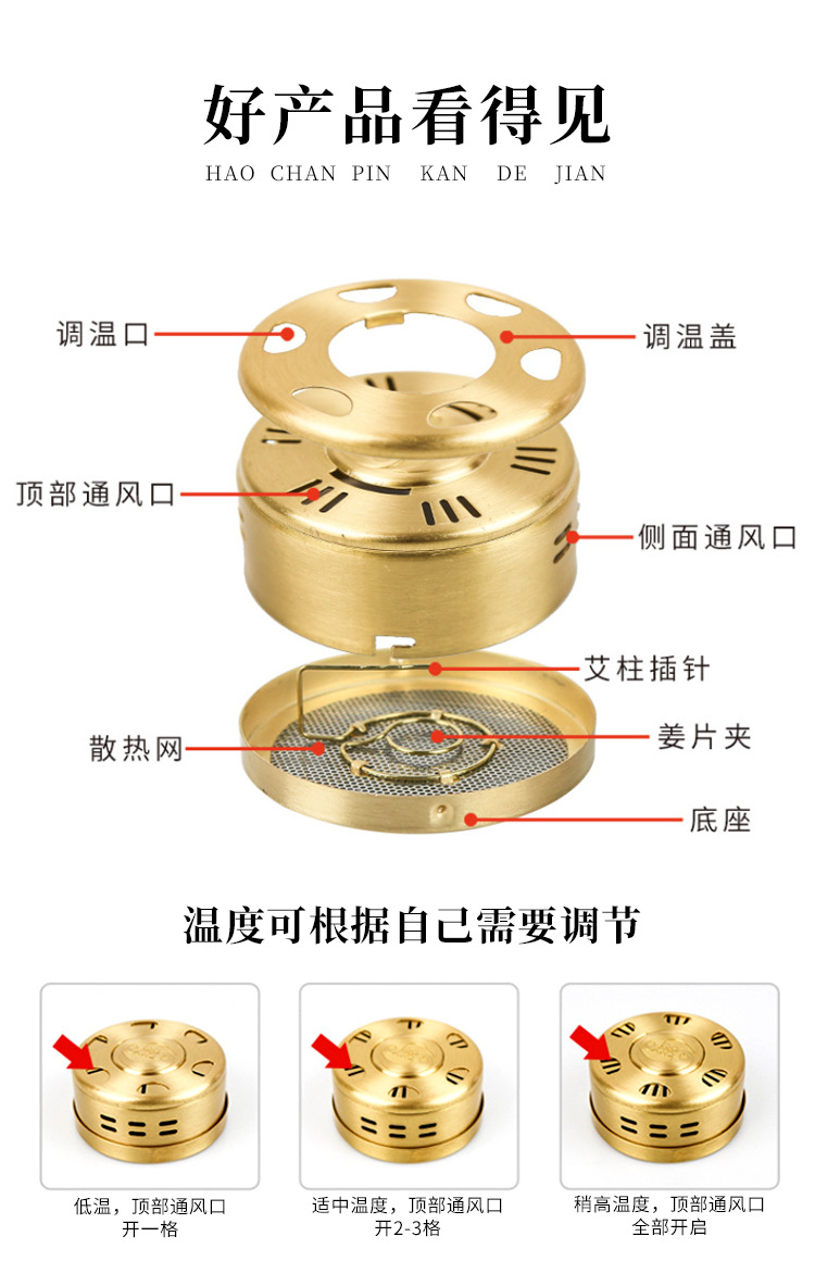 뜸 상자 두꺼운 구리 휴대용 뜸 휴대용 마이크로 연기 조절 가능한 온도 가정용 뜸 장비 뜸쑥 스틱 상자 물리 치료스토어 가기