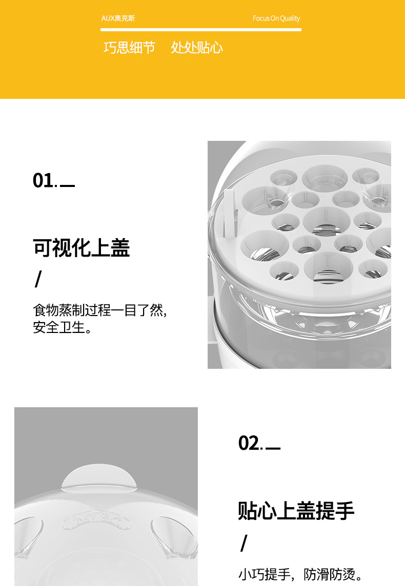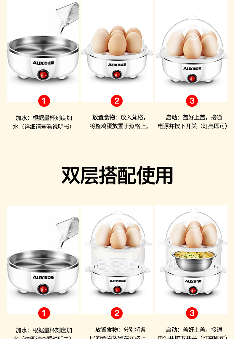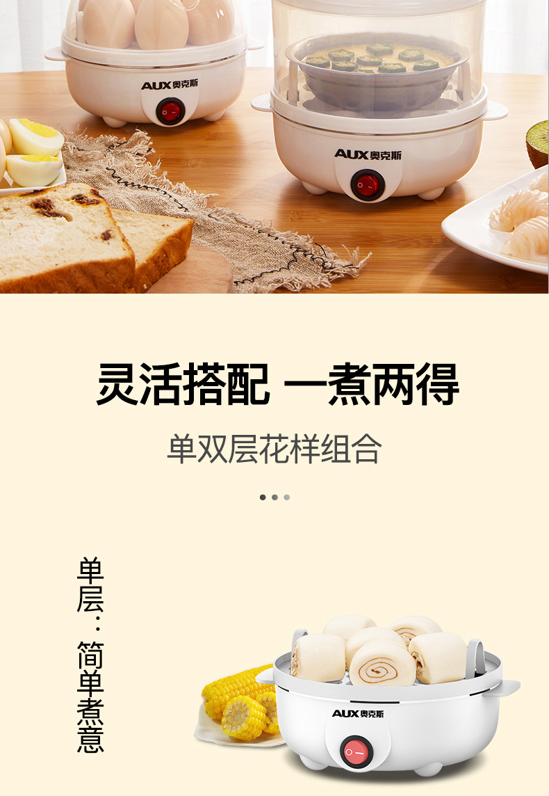 오크 AUX-108B 계란 밥솥 계란 찜기 계란 찜기 자동 전원 끄기 다기능 스테인레스 스틸 더블 레이어 미니