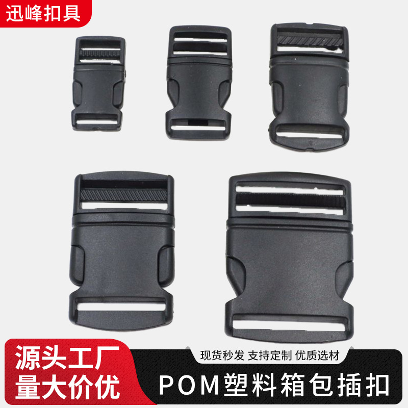 插扣一般是由两部分构成:即公扣和母扣,插扣后面挂织带的地方一般是单档或双档,单档的是不可调节的,双档的是可调整式的,材质以塑料中的聚丙烯(PP)、聚甲醛(POM,俗称赛刚)、尼龙(PA)为主。该产品适用于包装、行李箱、户外用品、汽车用品扣以及沙发内置扣等等,用途广泛。可根据客户要求更改产品颜色和材质。若需了解更多产品信息请及时联系客服!