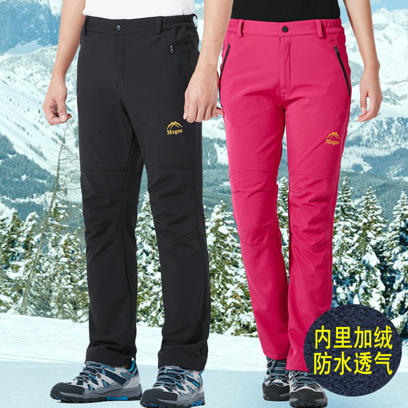 폭발성 폭행 바지 남성 가을과 겨울 방수 통기성 따뜻한 스키 바지 여성 야외 두꺼운 커플 소프트 쉘 바지 도매스토어 가기