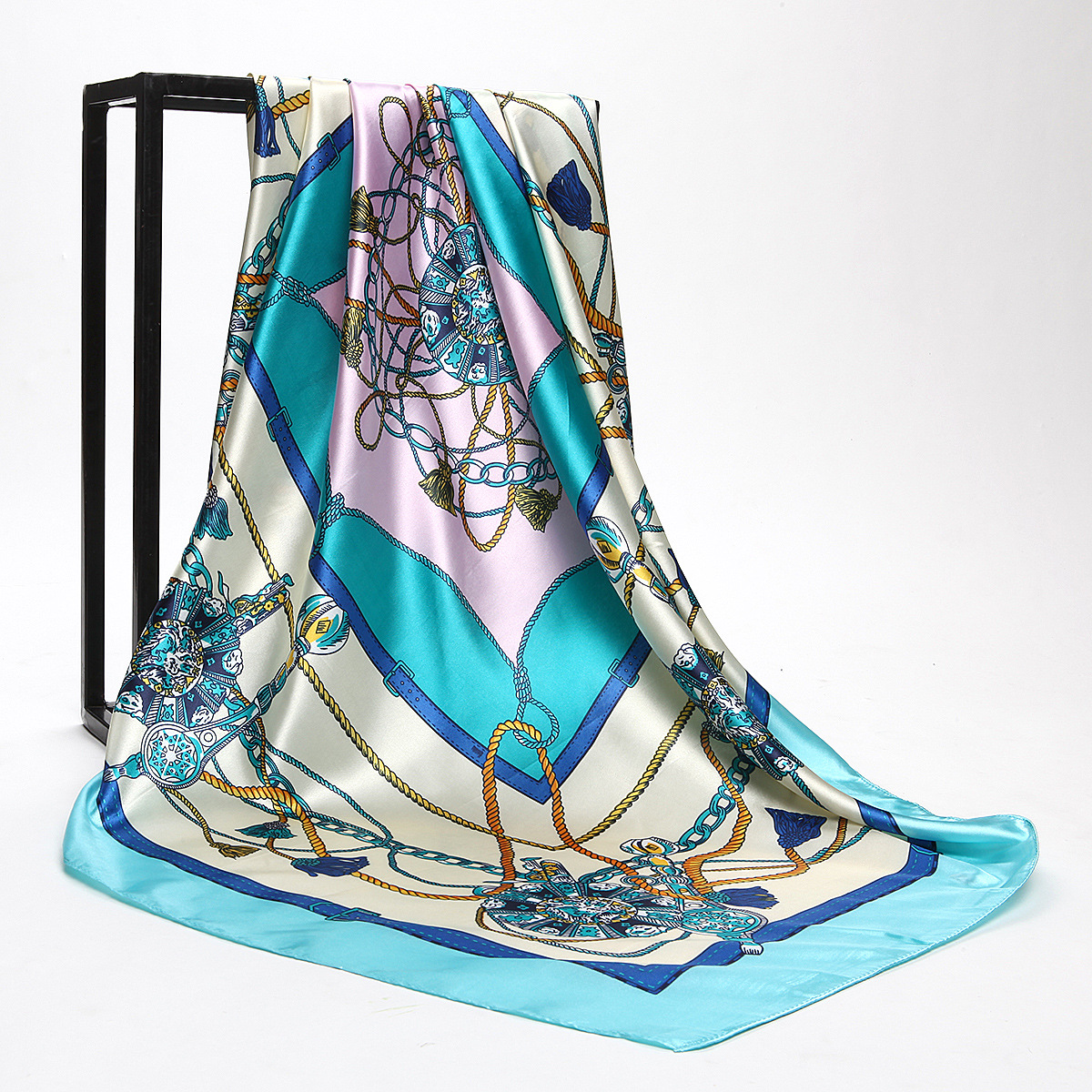 Gaohe 실크 스카프 90cm * 90cm 큰 사각형 스카프 유럽과 미국의 체인 백 실크 스카프 여성 AliExpress 소원