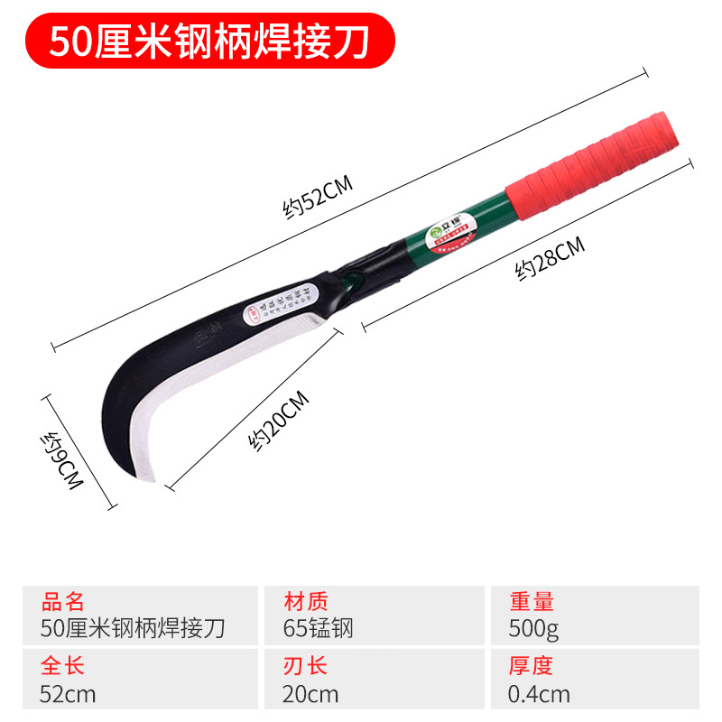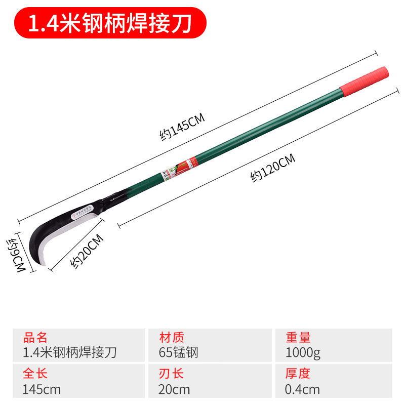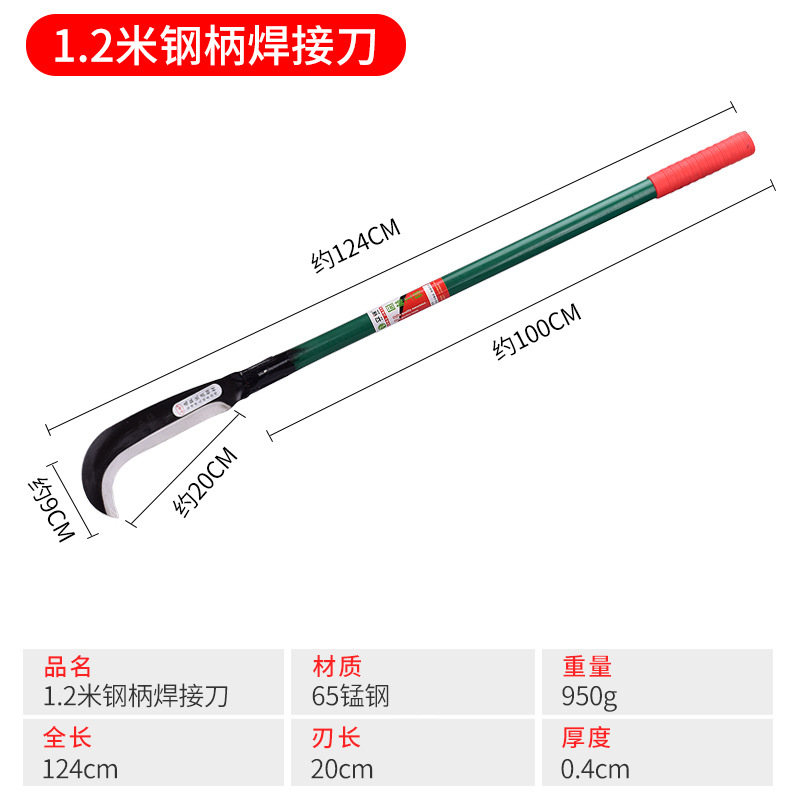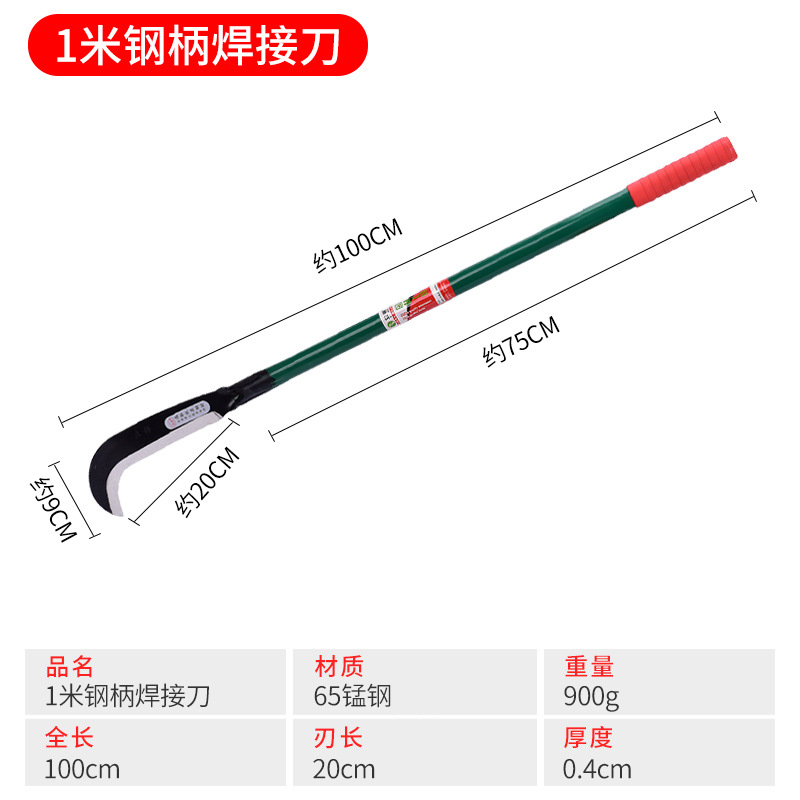 采用加厚钢管柄焊接柴刀,适用于割草打枝等用途!有全长50厘米 75厘米 1米 1.25米4个规格可供选择。undefined