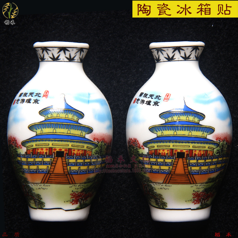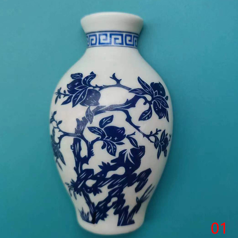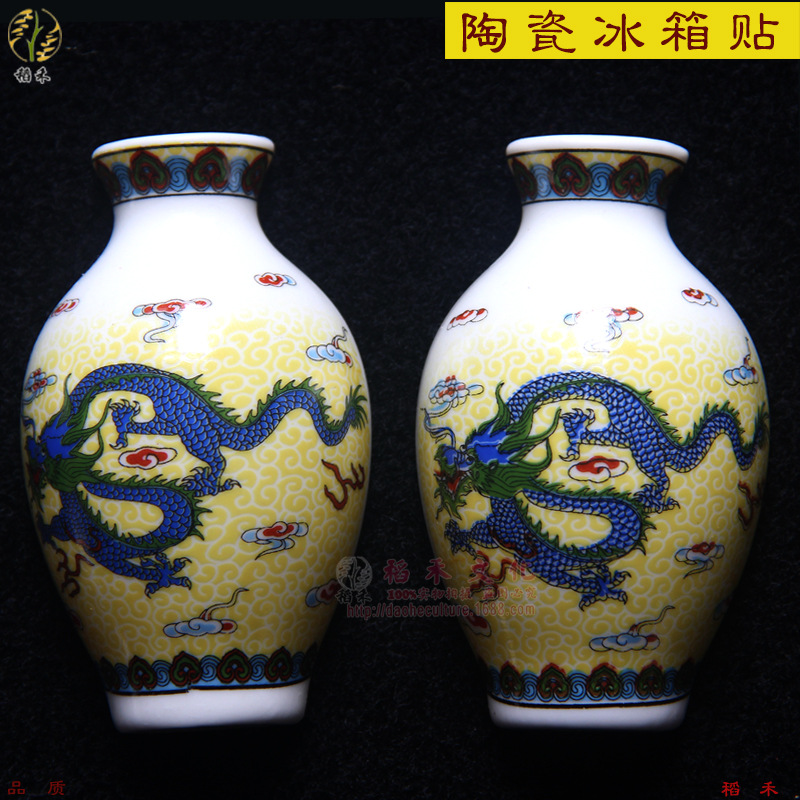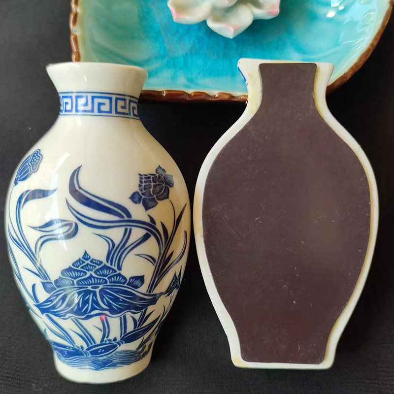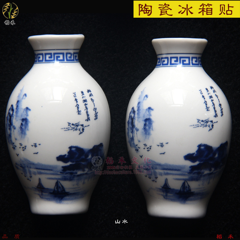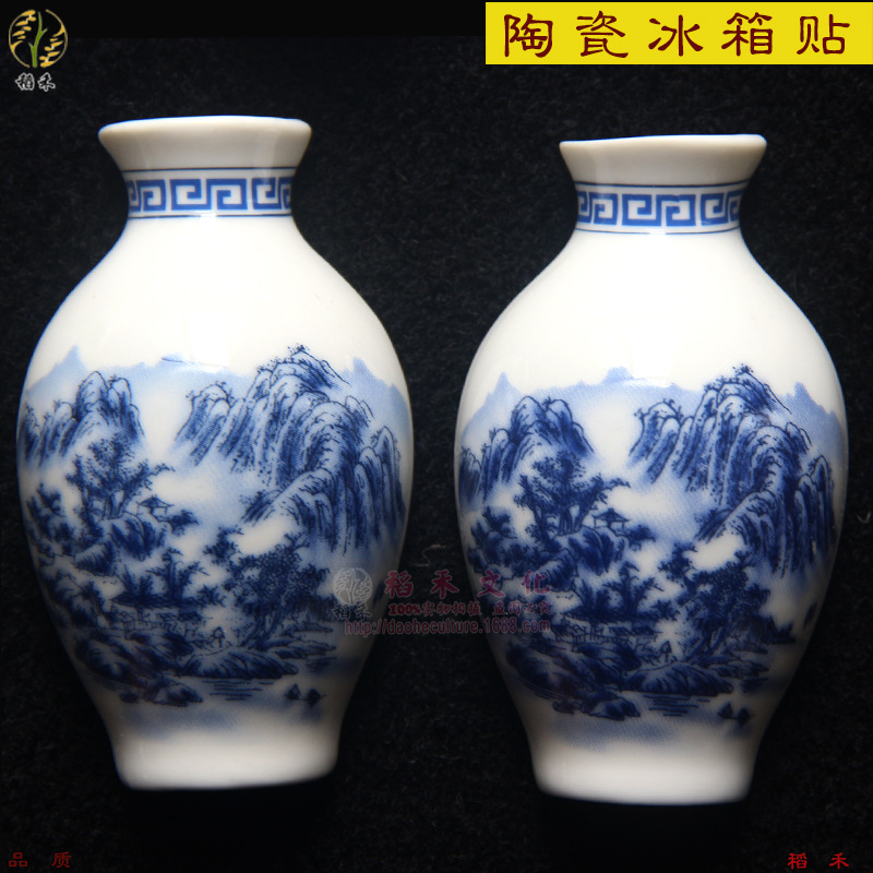 세라믹 반원 꽃병 사이드 냉장고 스티커 Jinling 12 헤어핀 파란색과 흰색 도자기 자이언트 팬더 중국 스타일 관광 공예스토어 가기