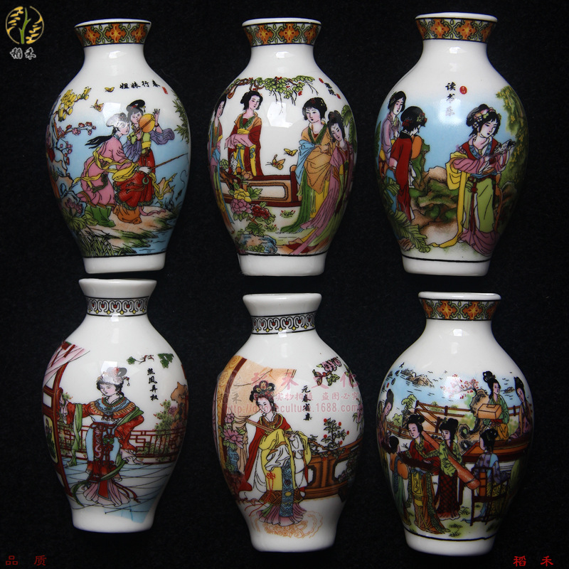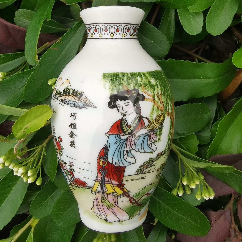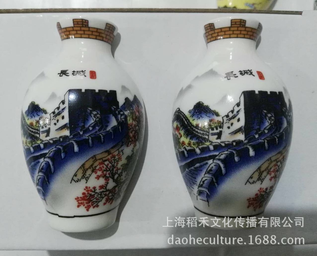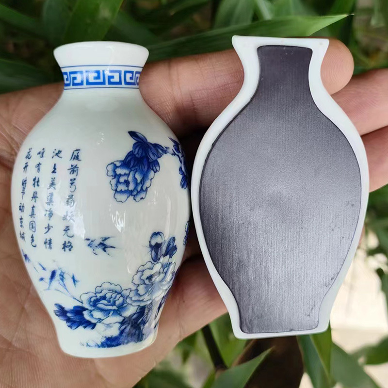 세라믹 반원 꽃병 사이드 냉장고 스티커 Jinling 12 헤어핀 파란색과 흰색 도자기 자이언트 팬더 중국 스타일 관광 공예스토어 가기