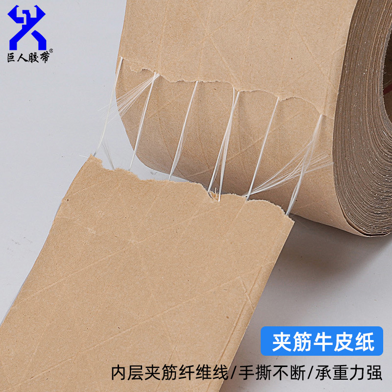 夹筋牛皮胶带特点:粘性强,韧性超强不易断 自带粘性可直接封箱打包,非常方便使用