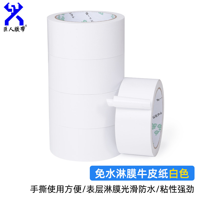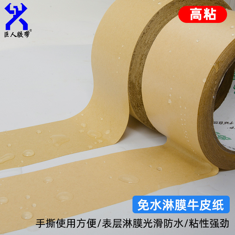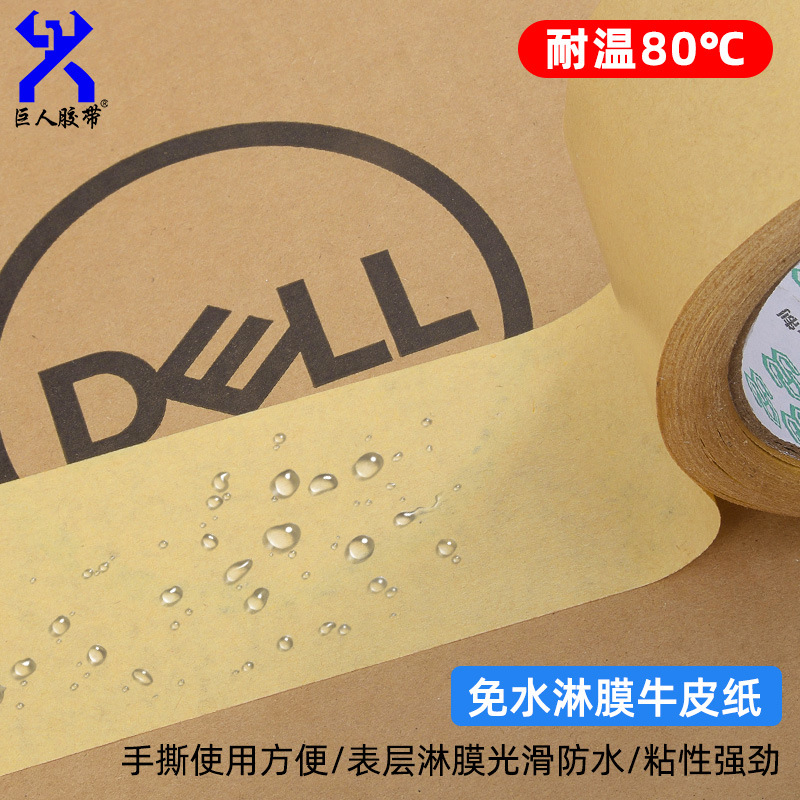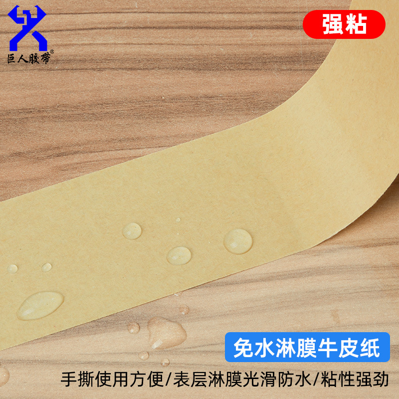 免水牛皮胶带特点表面光滑,可防水 粘性强韧性好带粘性可直接打包,使用非常方便用途:纸箱印字的屏蔽木业封边/拼缝 纸盒贴角  板材的粘缝和遮蔽  服装表面粘毛使用、重量物体的包装等等