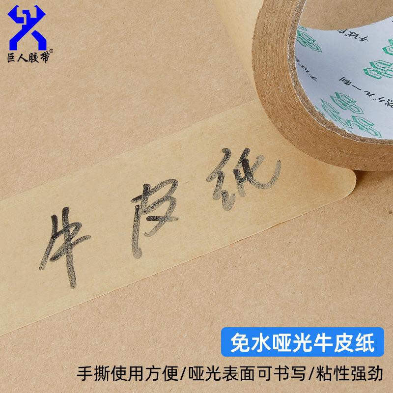 可写字牛皮胶特点:可在胶带上书写可降解可回收100%环保 粘性强韧性好带粘性可直接打包非常方便使用,免除用水涂胶带的麻烦
