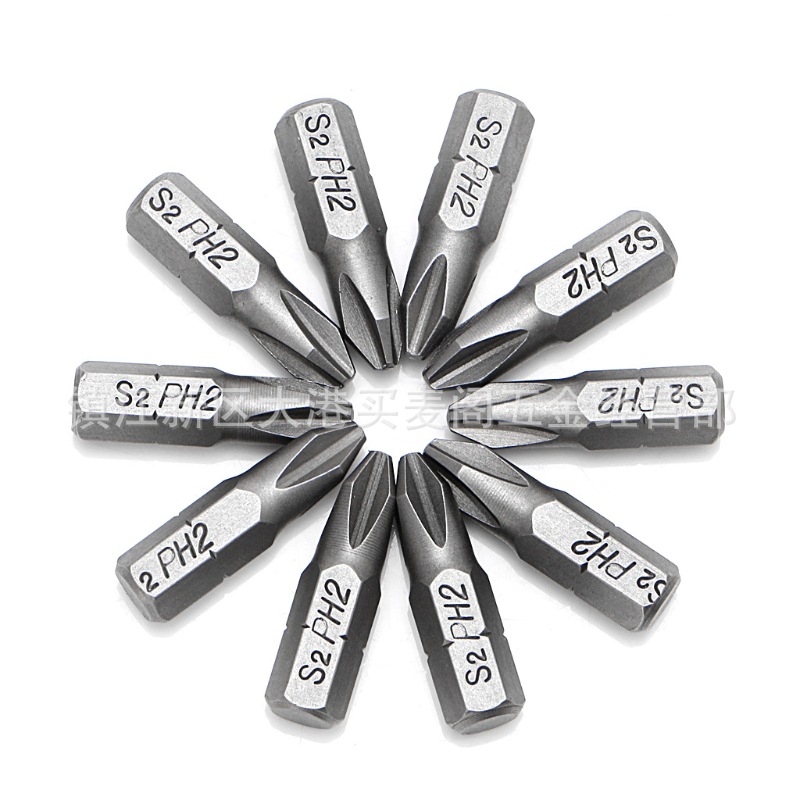 10 미끄럼 방지 도금 티타늄 배치 헤드 25mm 길이 PH2 스크루 드라이버 짧은 배치 바람 배치스토어 가기