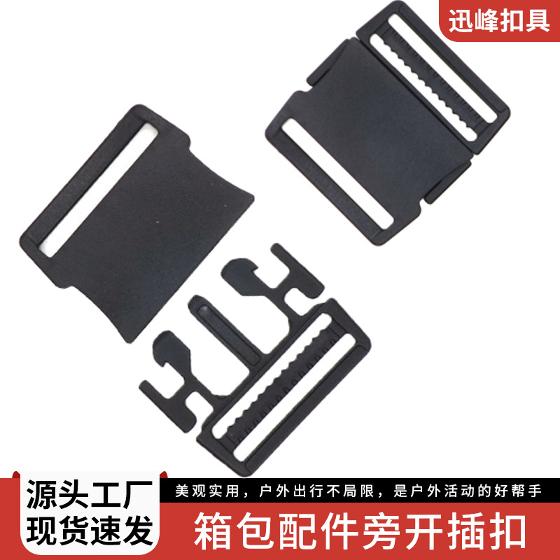 插扣一般是由两部分构成:即公扣和母扣,插扣后面挂织带的地方一般是单档或双档,单档的是不可调节的,双档的是可调整式的,材质以塑料中的聚丙烯(PP)、聚甲醛(POM,俗称赛刚)、尼龙(PA)为主。该产品适用于包装、行李箱、户外用品、汽车用品扣以及沙发内置扣等等,用途广泛。可根据客户要求更改产品颜色和材质。若需了解更多产品信息请及时联系客服!