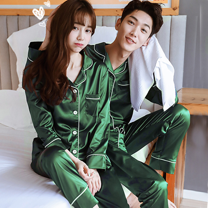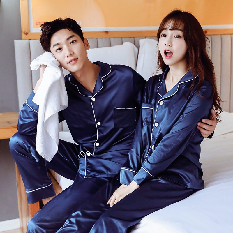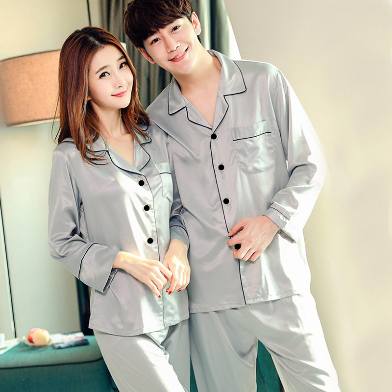 커플 잠옷 여자의 봄과 가을 긴 소매 시뮬레이션 실크 얇은 플러스 지방 플러스 사이즈 200kg 남자의 가정 의류 세트스토어 가기