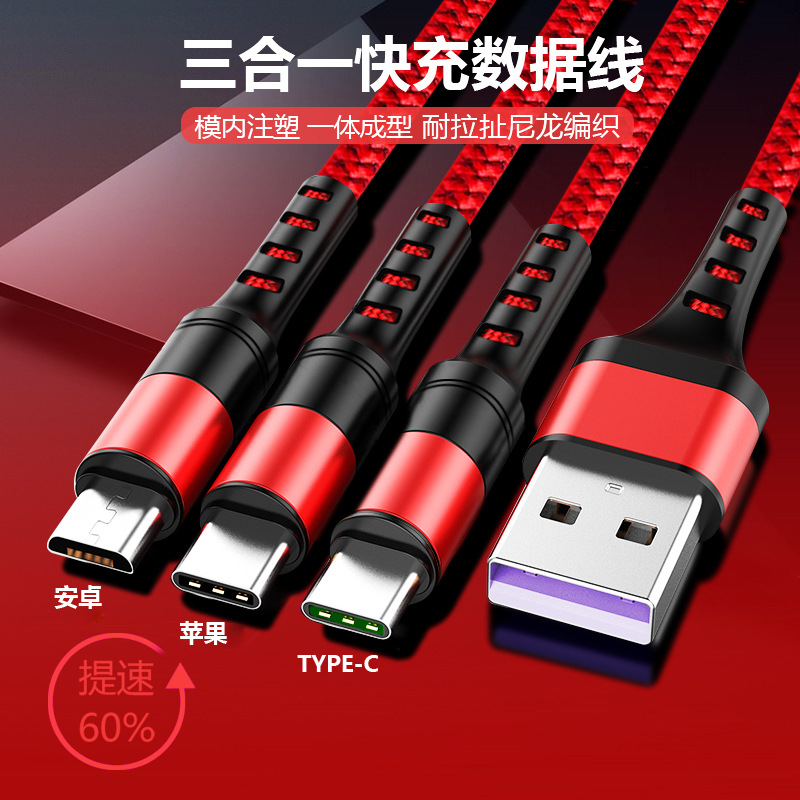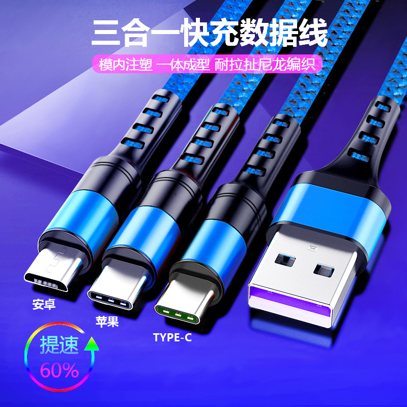 一拖三2.4A数据线