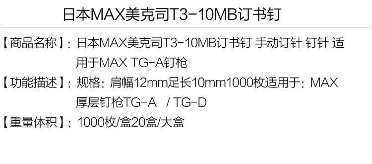 MAX Meikesi T3-10MB 스테이플러 코드 네일 Meikesi TG-A 매뉴얼 네일