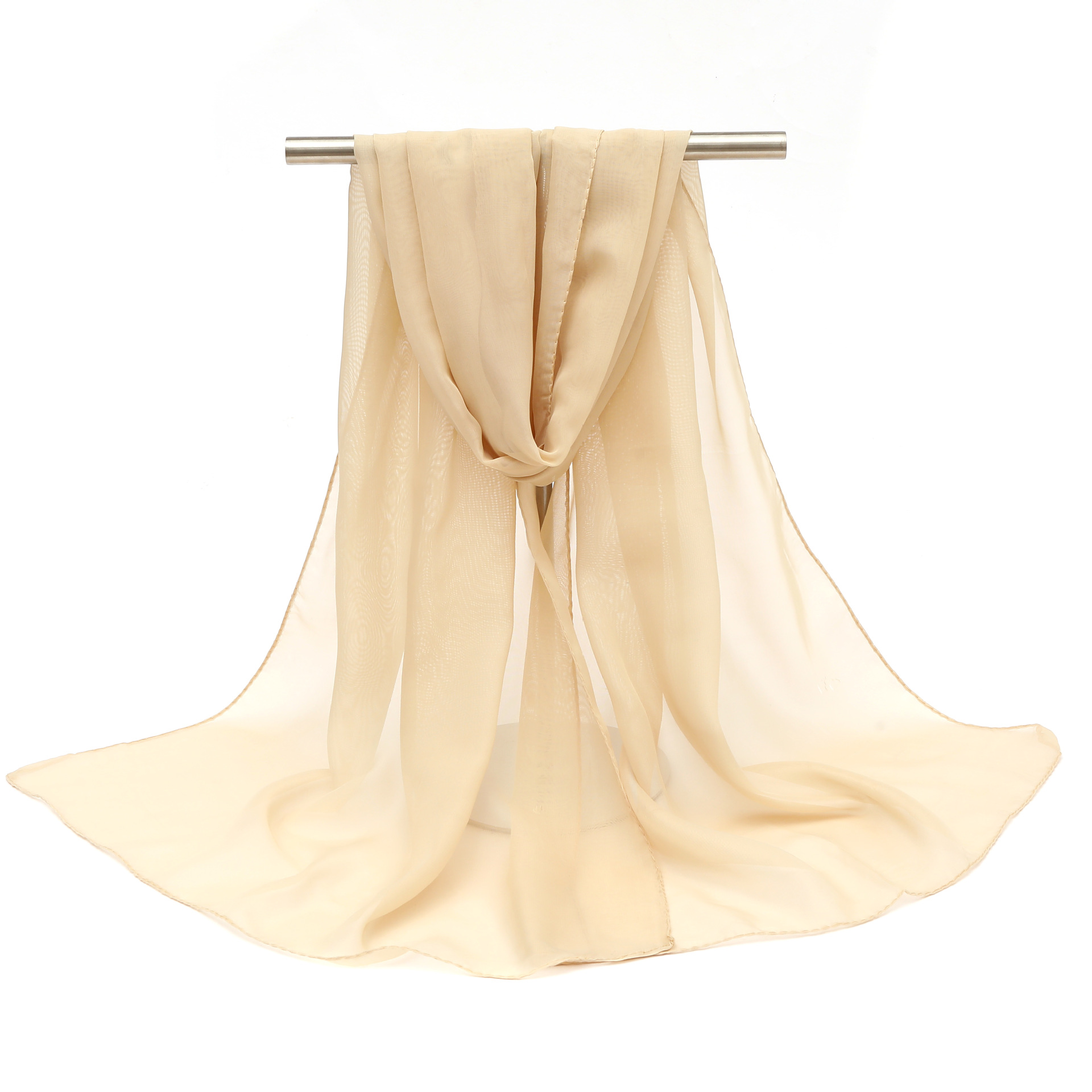 新款百搭丝巾韩版 雪纺纱巾春秋夏季单色款围巾白色披肩长款女