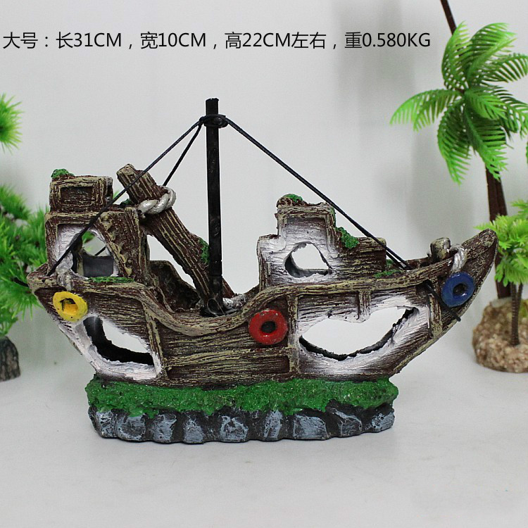 해적선 수족관 조경 어항 조경 장식 보트 탈출 집 장식품 시뮬레이션 보트 수지 침몰 보트 소형 그물 보트스토어 가기