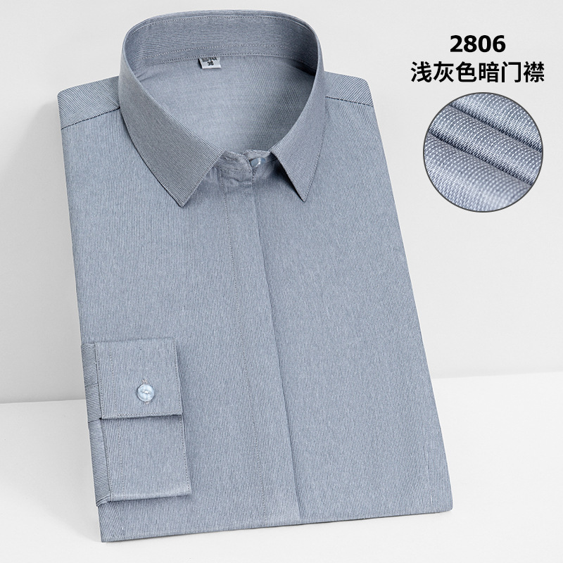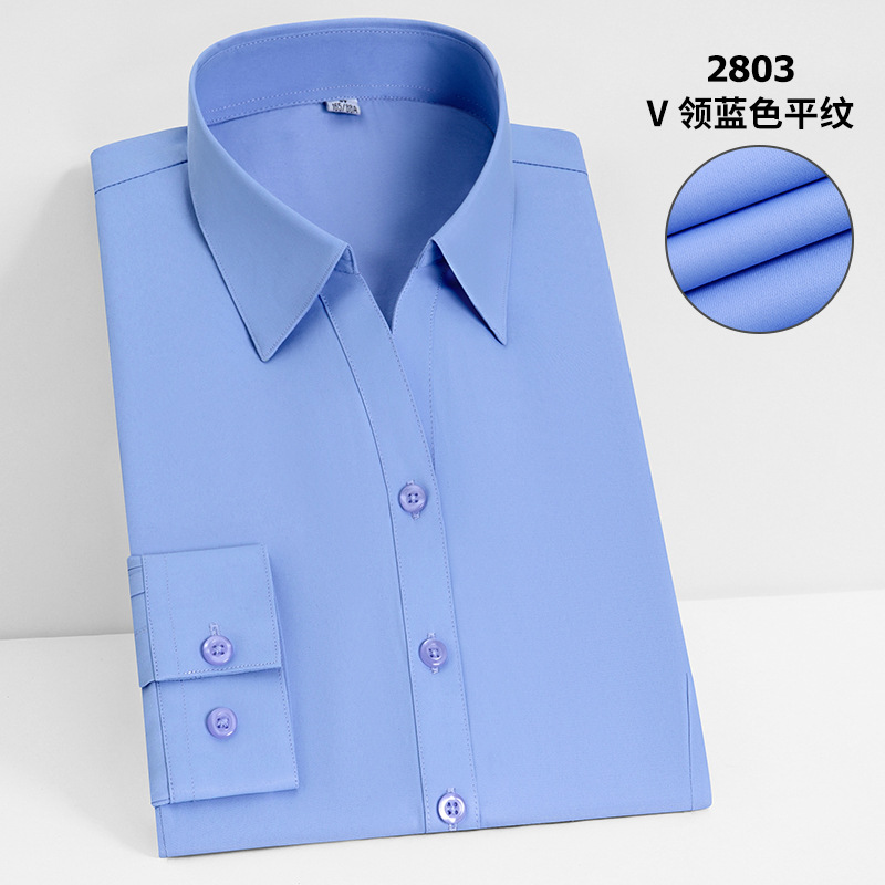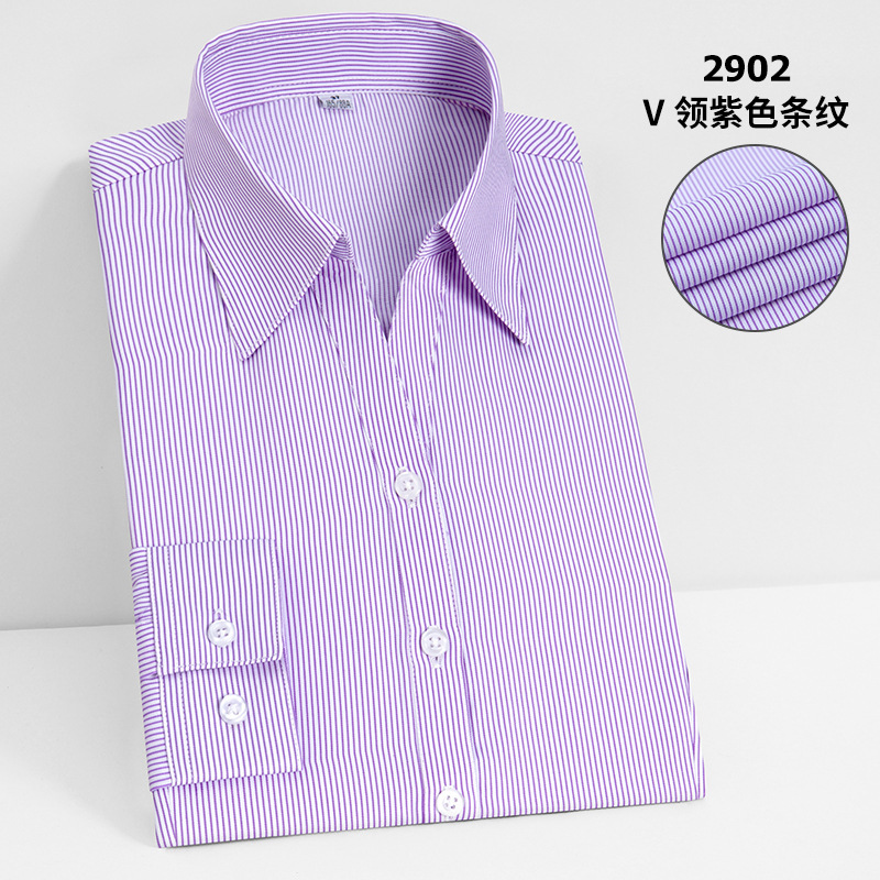블루 스트라이프 브이넥 긴팔 셔츠 여성용 슬림핏 슬리밍 우아한 비즈니스 캐주얼 셔츠 작업복 재고 자수 로고스토어 가기