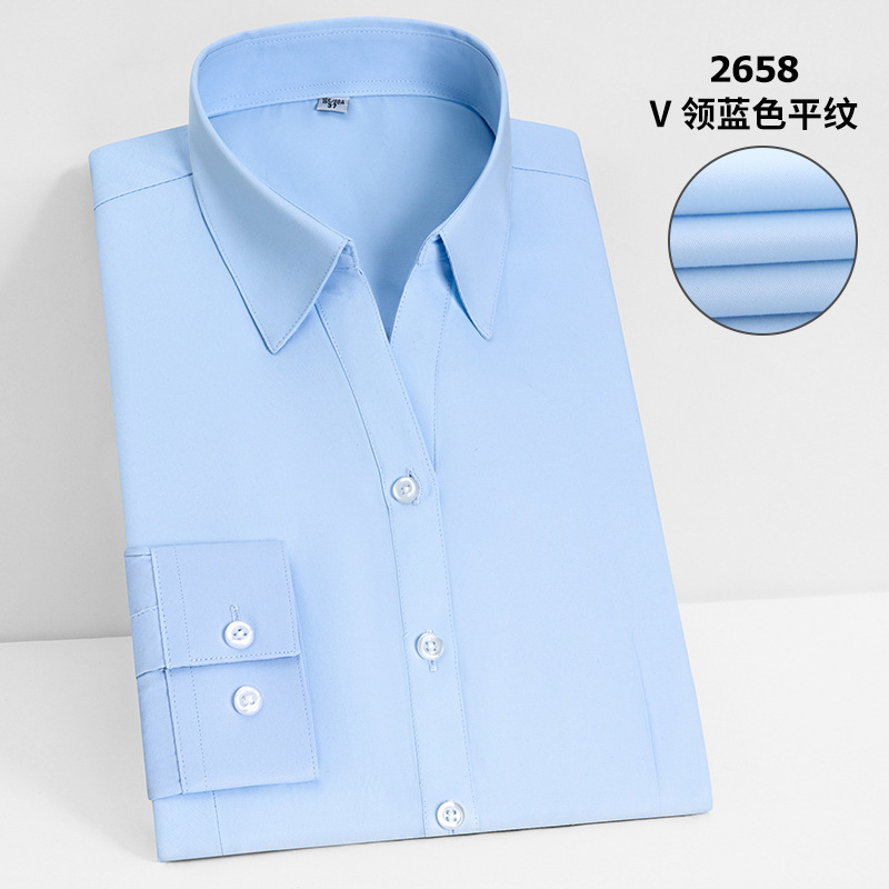 블루 스트라이프 브이넥 긴팔 셔츠 여성용 슬림핏 슬리밍 우아한 비즈니스 캐주얼 셔츠 작업복 재고 자수 로고