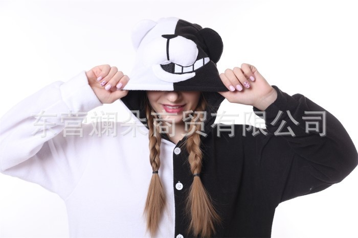 제조업체 폴라 플리스 라운드 댄스 커플 스타일 흑백 만화 동물 원피스 홈웨어 잠옷 블랙 도그스토어 가기