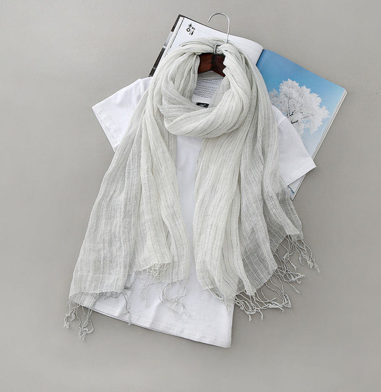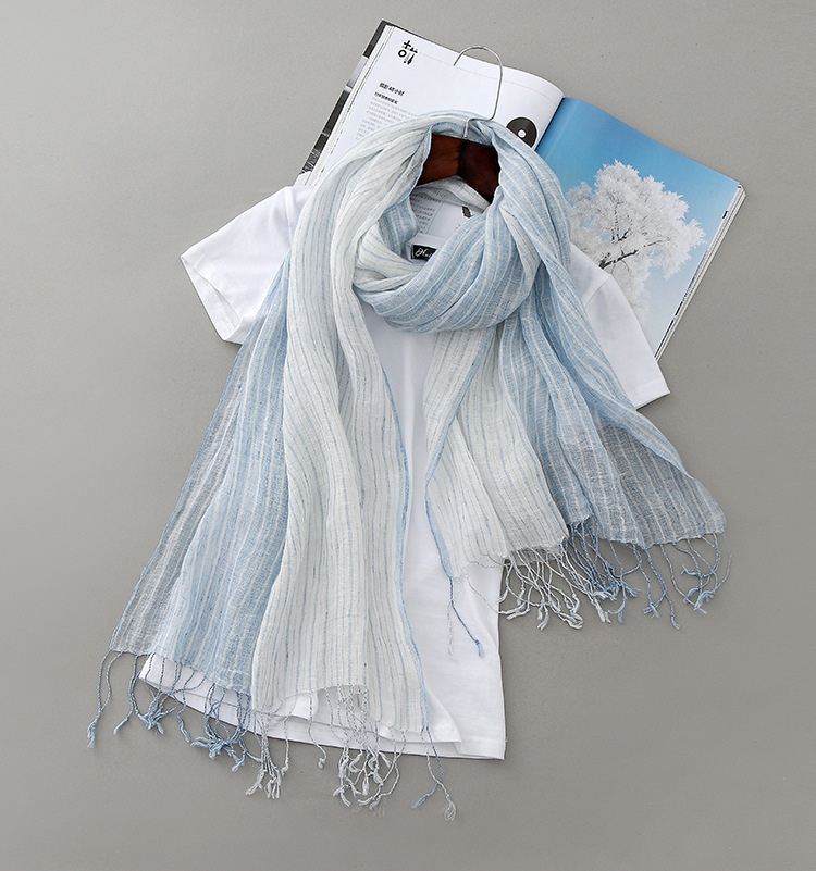 여름 새로운 일본 린넨 스카프 스퀘어 스카프 패션 모든 매치 스트라이프 면과 린넨 숄 비치 자외선 차단제 스카프