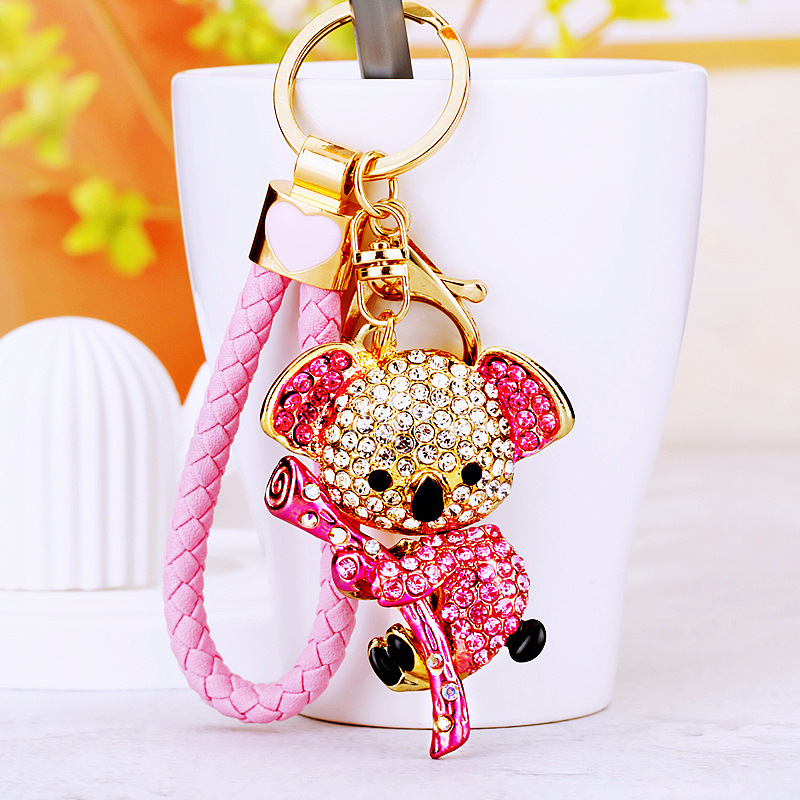 중국식 모조 다이아몬드 코알라 곰 자동차 열쇠 고리 여성용 가방 펜던트 금속 열쇠 고리 외국 무역 작은 선물 도매