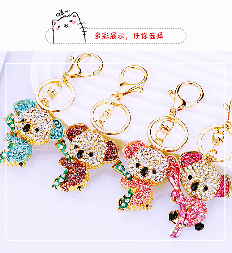 중국식 모조 다이아몬드 코알라 곰 자동차 열쇠 고리 여성용 가방 펜던트 금속 열쇠 고리 외국 무역 작은 선물 도매스토어 가기