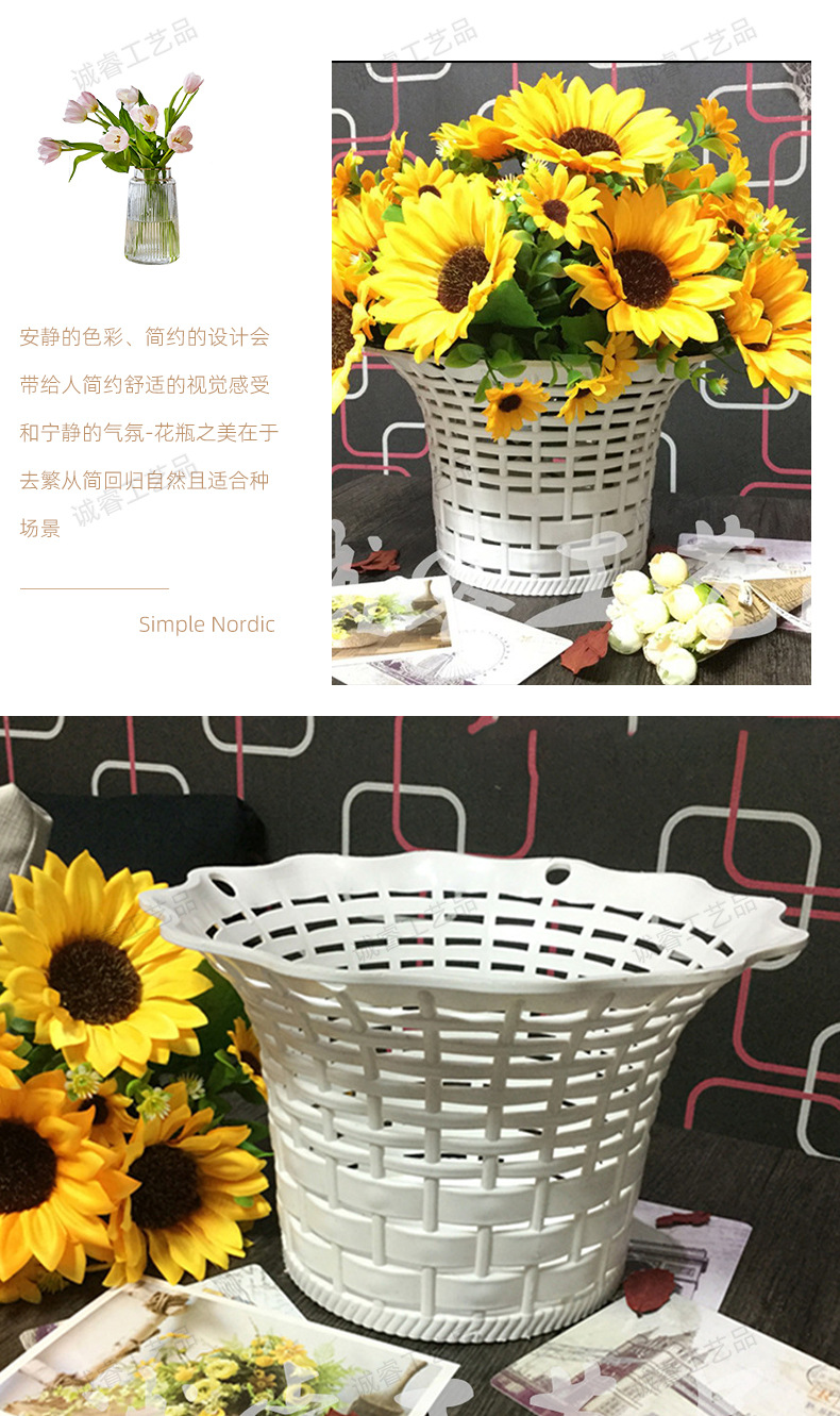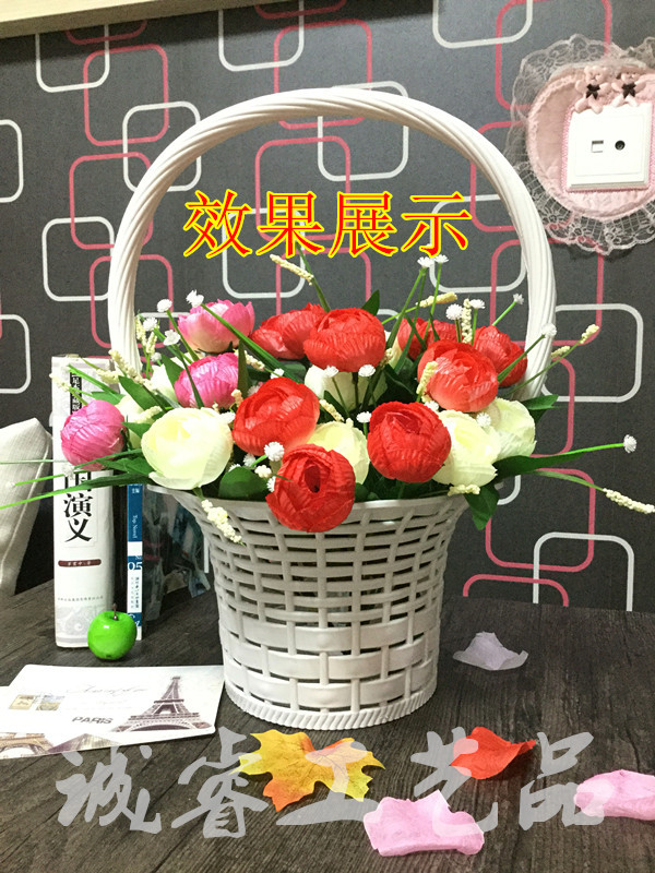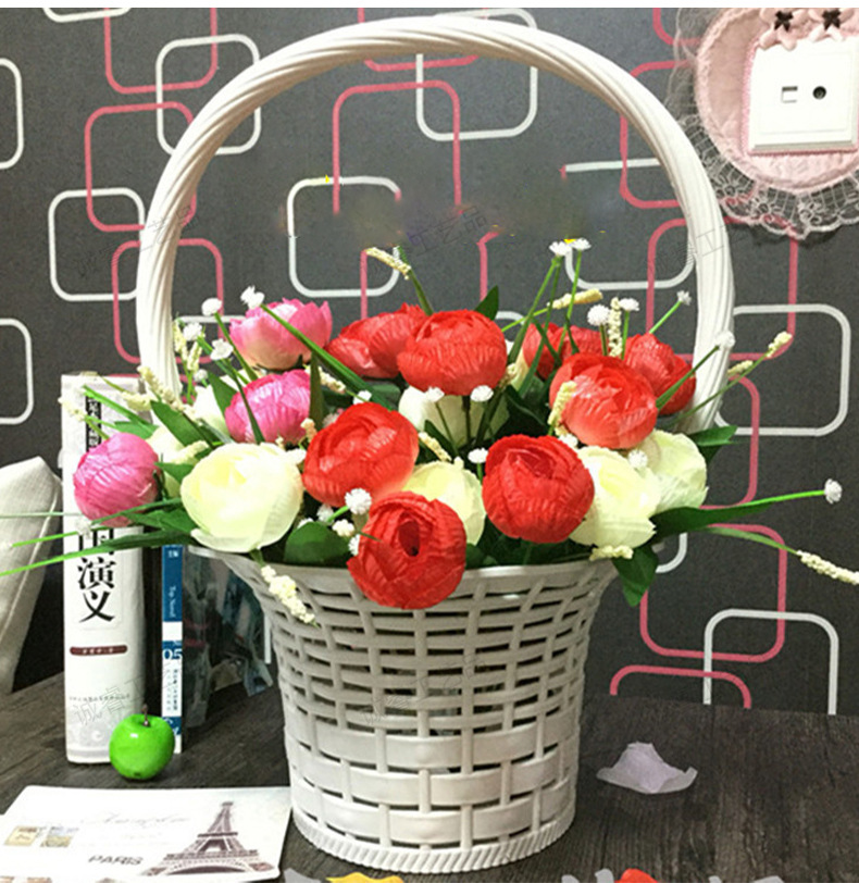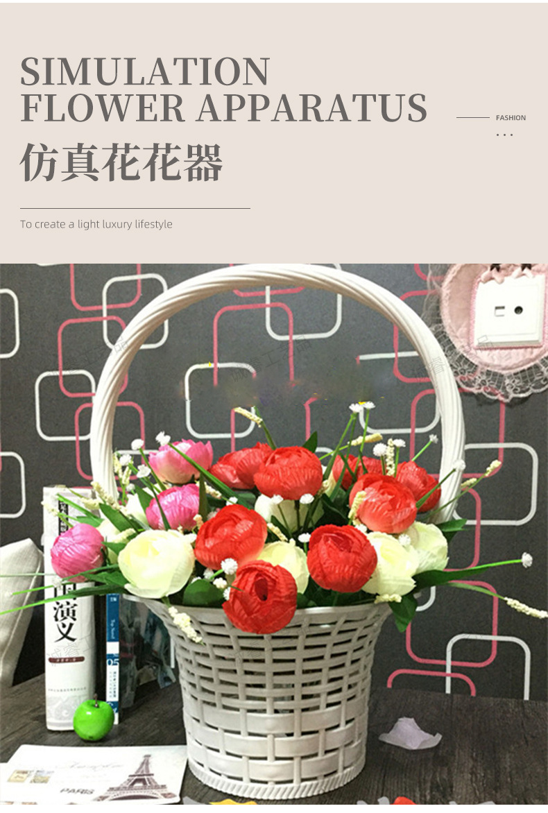 공장 공급 흰색 플라스틱 꽃 바구니 과일 바구니 꽃 바구니 홈 사진 소품 장식품 인공 꽃 냄비