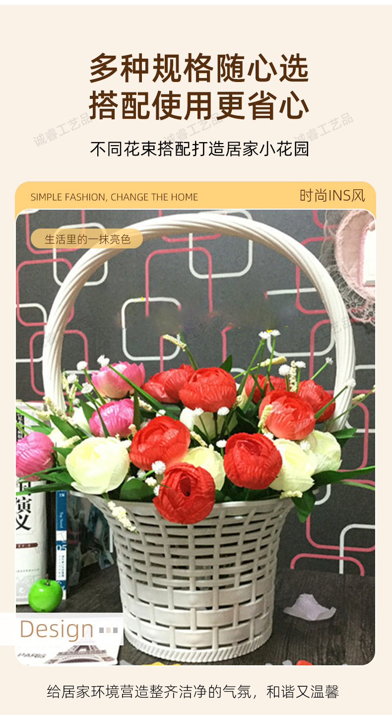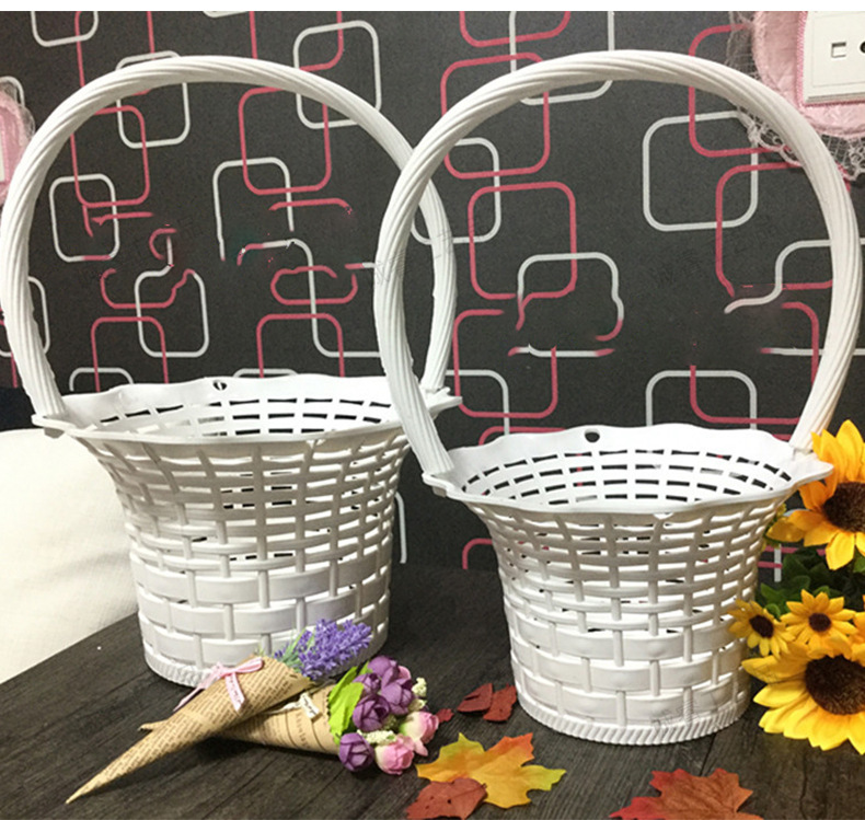 공장 공급 흰색 플라스틱 꽃 바구니 과일 바구니 꽃 바구니 홈 사진 소품 장식품 인공 꽃 냄비스토어 가기