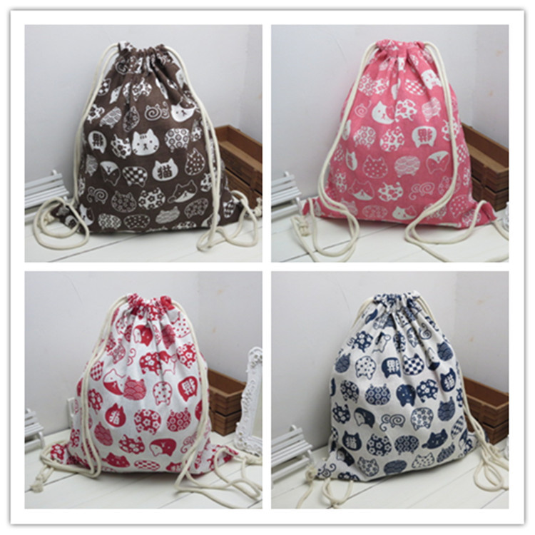 새로운 귀여운 고양이 수제 졸라매는 끈 천 가방 다시 여아 배낭 도매 캐주얼 천 가방 배낭