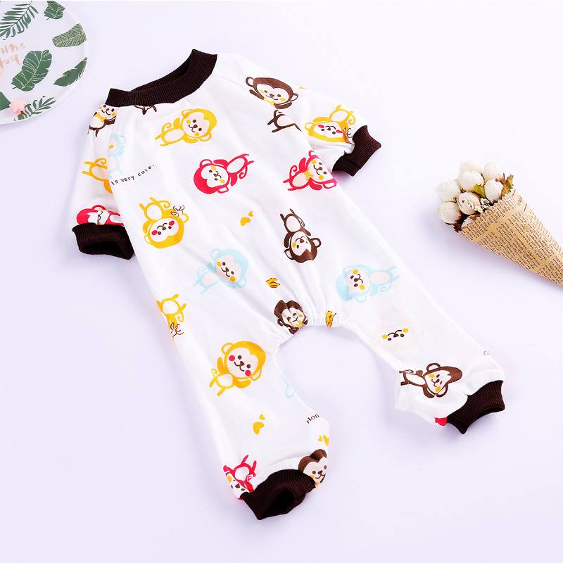 애완 동물 옷 순면 니트 프린트 잠옷 코지 테디 애완견 귀엽고 편안한 4 족 가정용 옷 도매