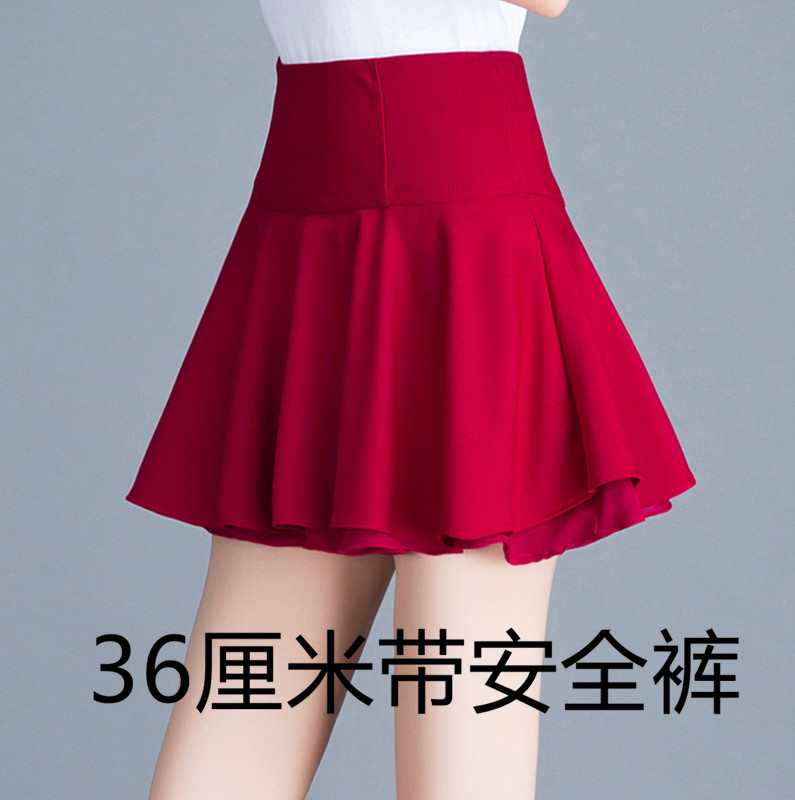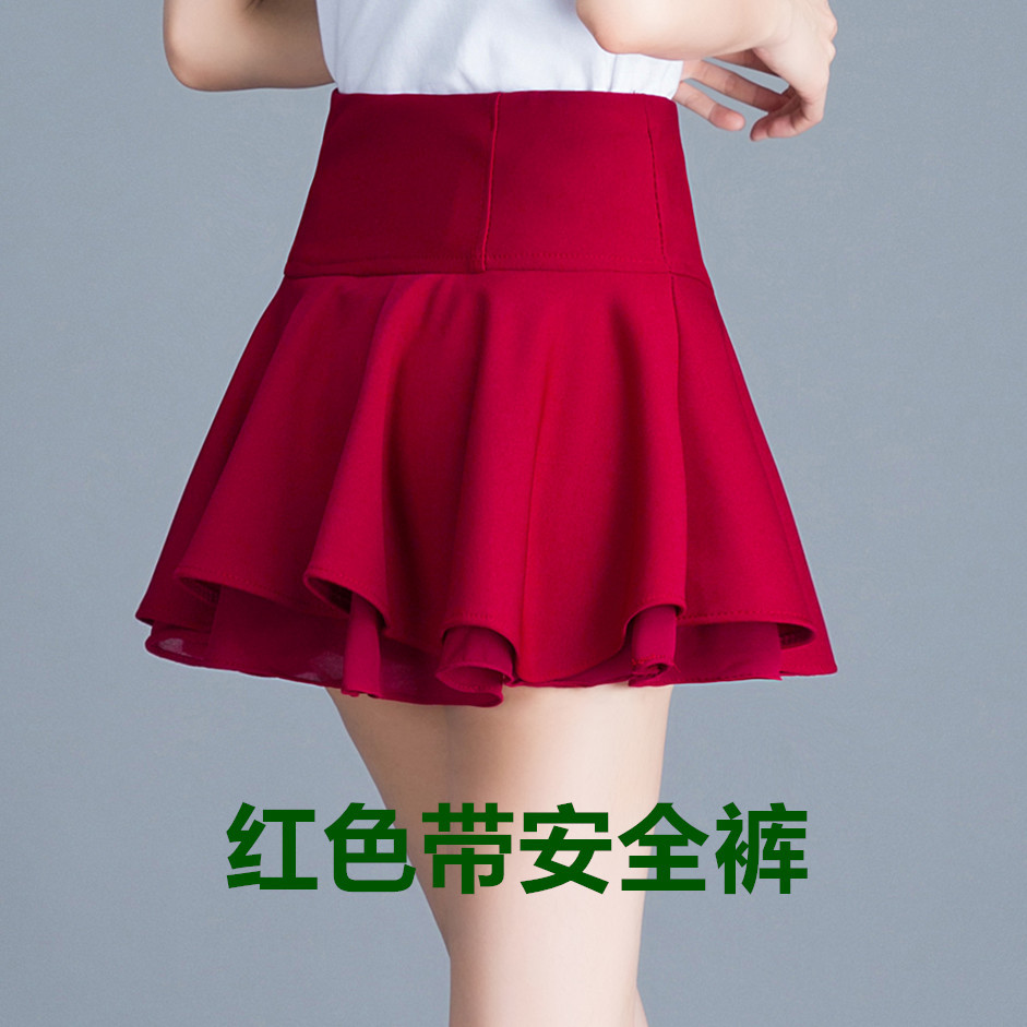 本产品上层选用280克固色加练弹力针织面,不褪色,不起球,下层选用优质雪纺,垂感极佳,内含晴纶材质的安全裤,,四季可穿!视觉上拉升美腿,超显身材!默认中通快递,19.00分前下单当天发货!