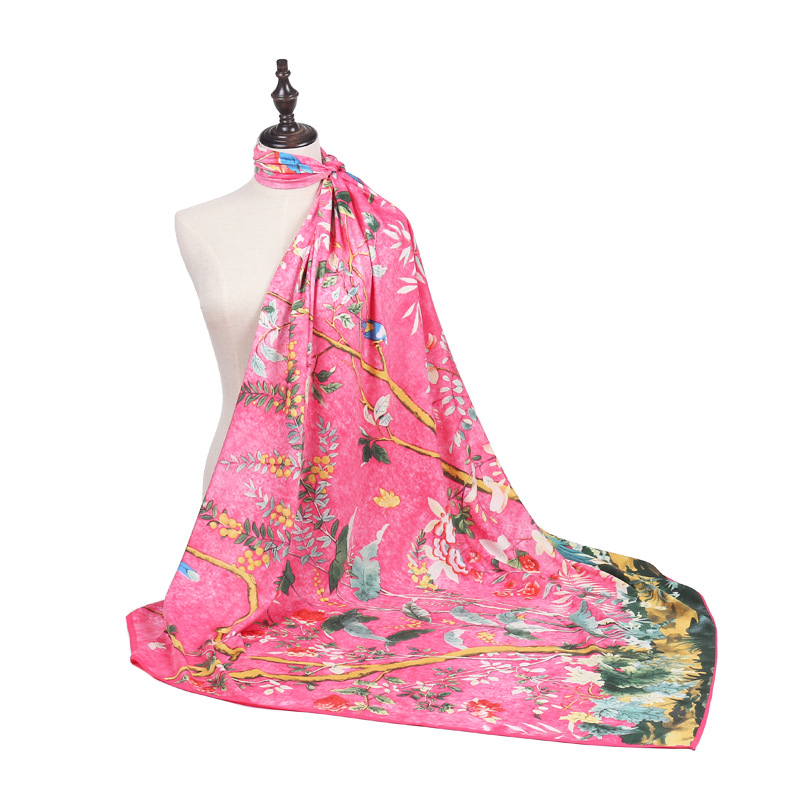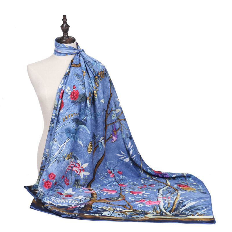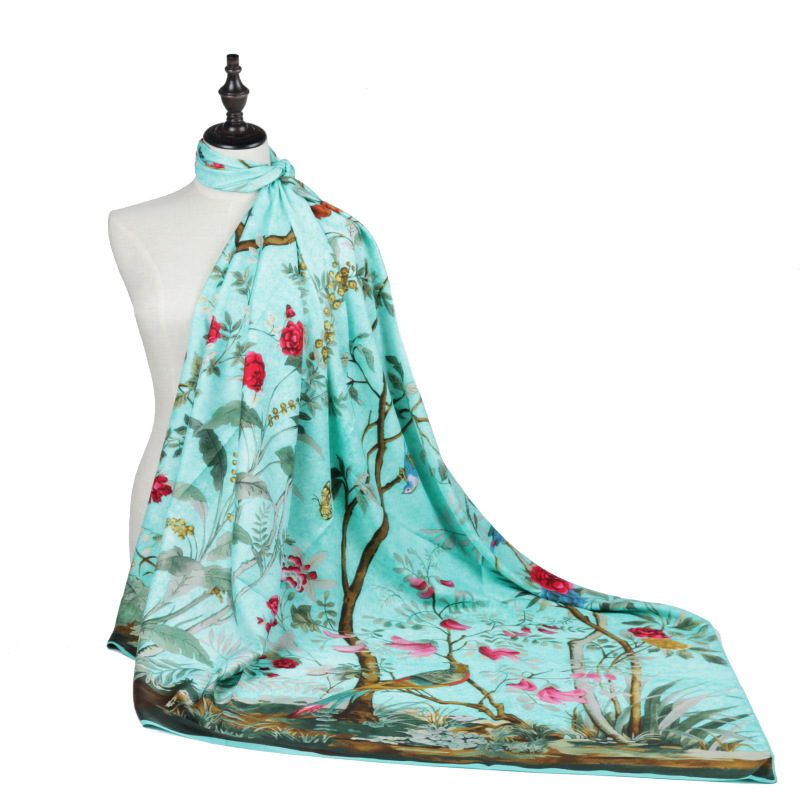 Gaohe 유럽과 미국의 패션 식물 꽃과 새 정글 여성 실크 스카프 130cm 큰 사각형 스카프 대외 무역 AliExpress
