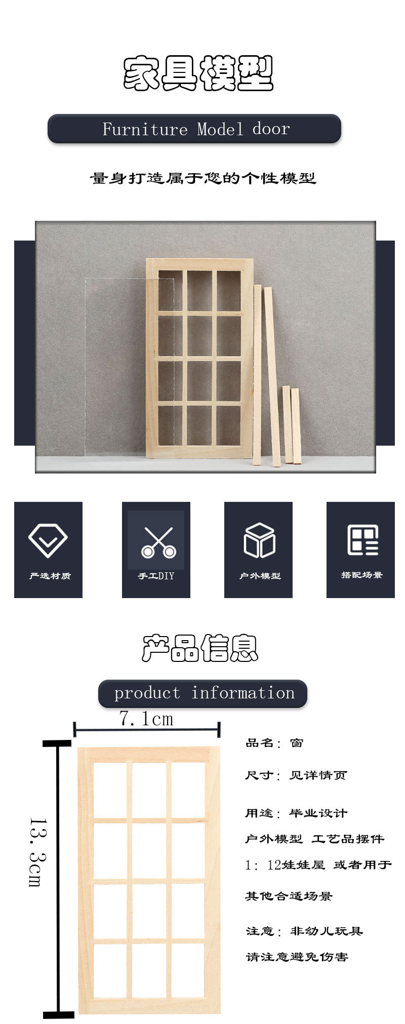 娃娃屋门窗配件,简约大方的12格窗,价格也很实惠,自己DIY娃娃屋非常合适~