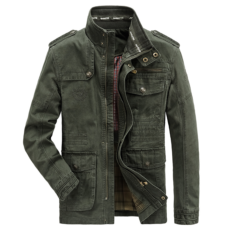 크로스 보더 플러스 사이즈 봄과 가을 남성 캐주얼 자켓 코튼 스탠드 칼라 남성 자켓 세탁 야외 도매 8255