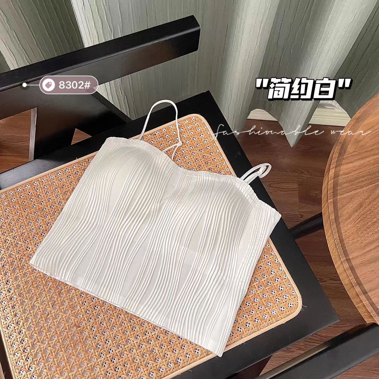 골판지 질감 추적 슬링베이스 조끼 속옷 겉옷을 입고 내부 얇은 어깨 조절 벨트 랩 유방 튜브 탑 여성