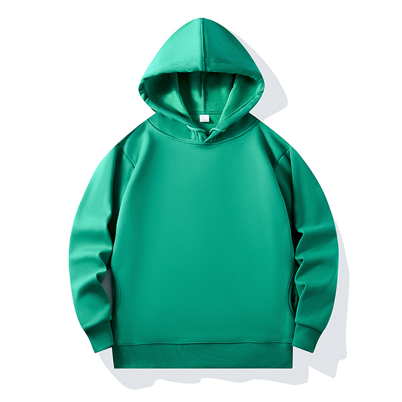 새 성인 기모 포켓 후드 스웨터 단색 도매 긴 소매 두꺼운 작업복 커플 클래스 옷 인쇄 로고스토어 가기