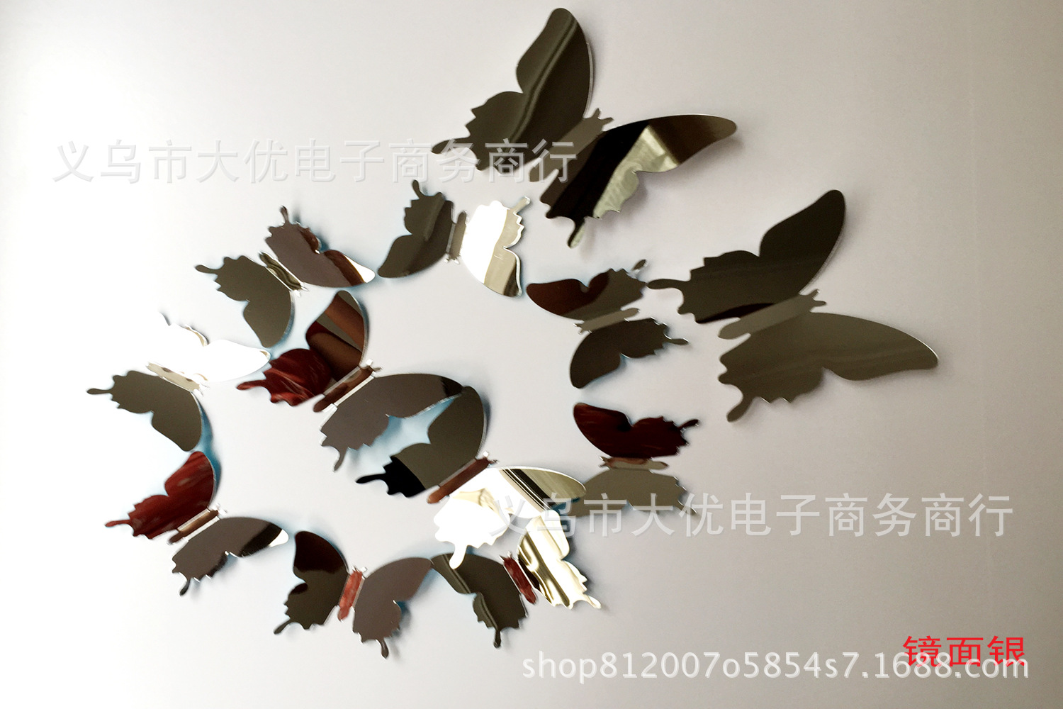 12 스테레오 미러 나비 거울 3D 나비 AliExpress 뜨거운 판매 벽 스티커 침실 거실 연구 장식