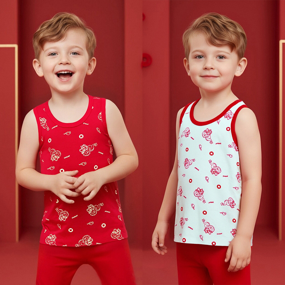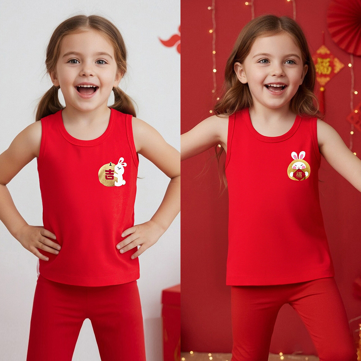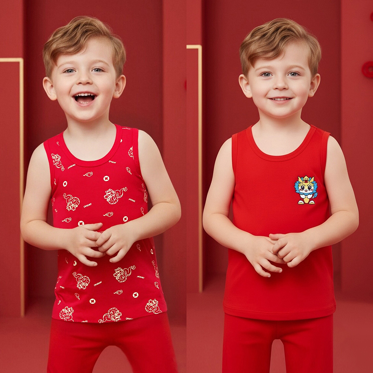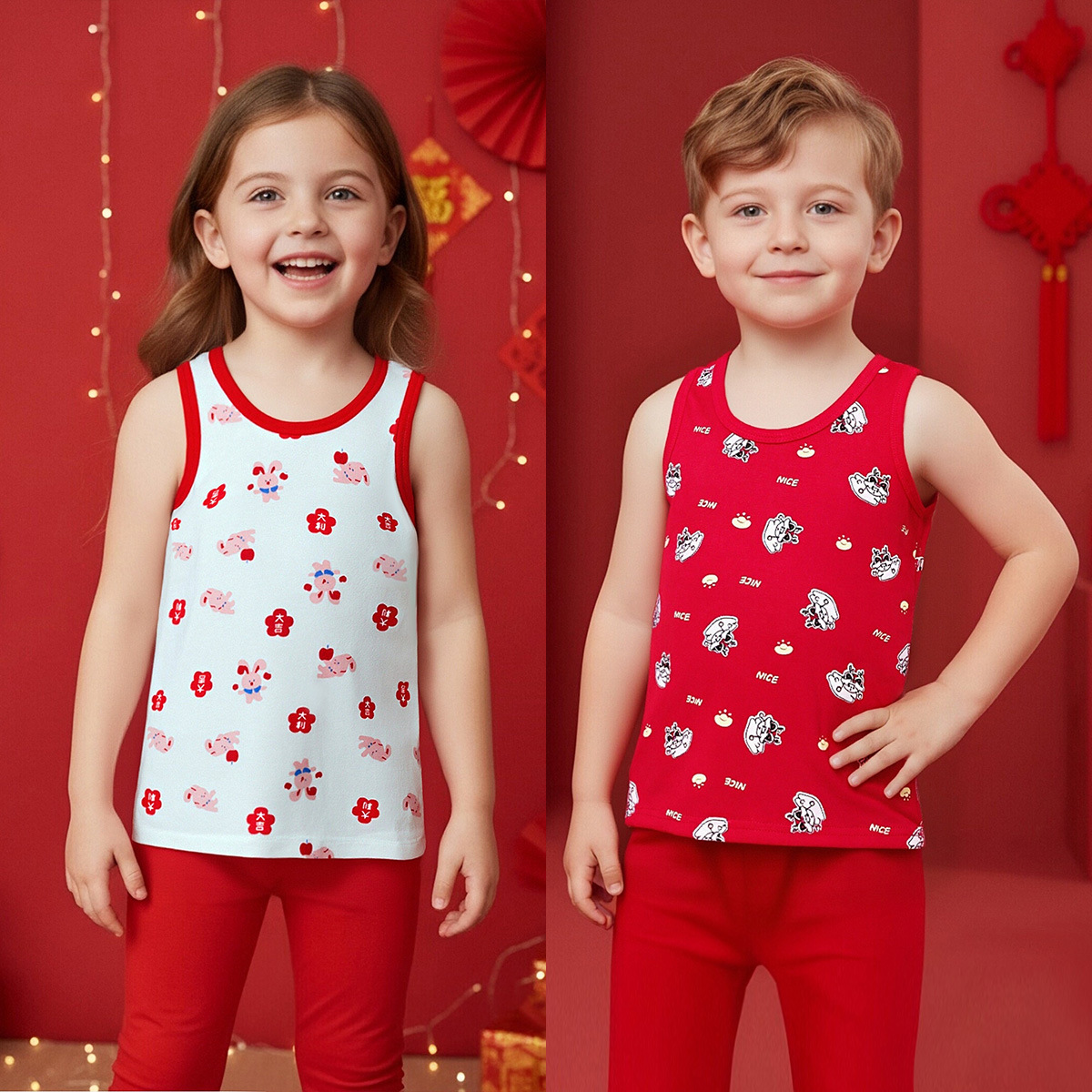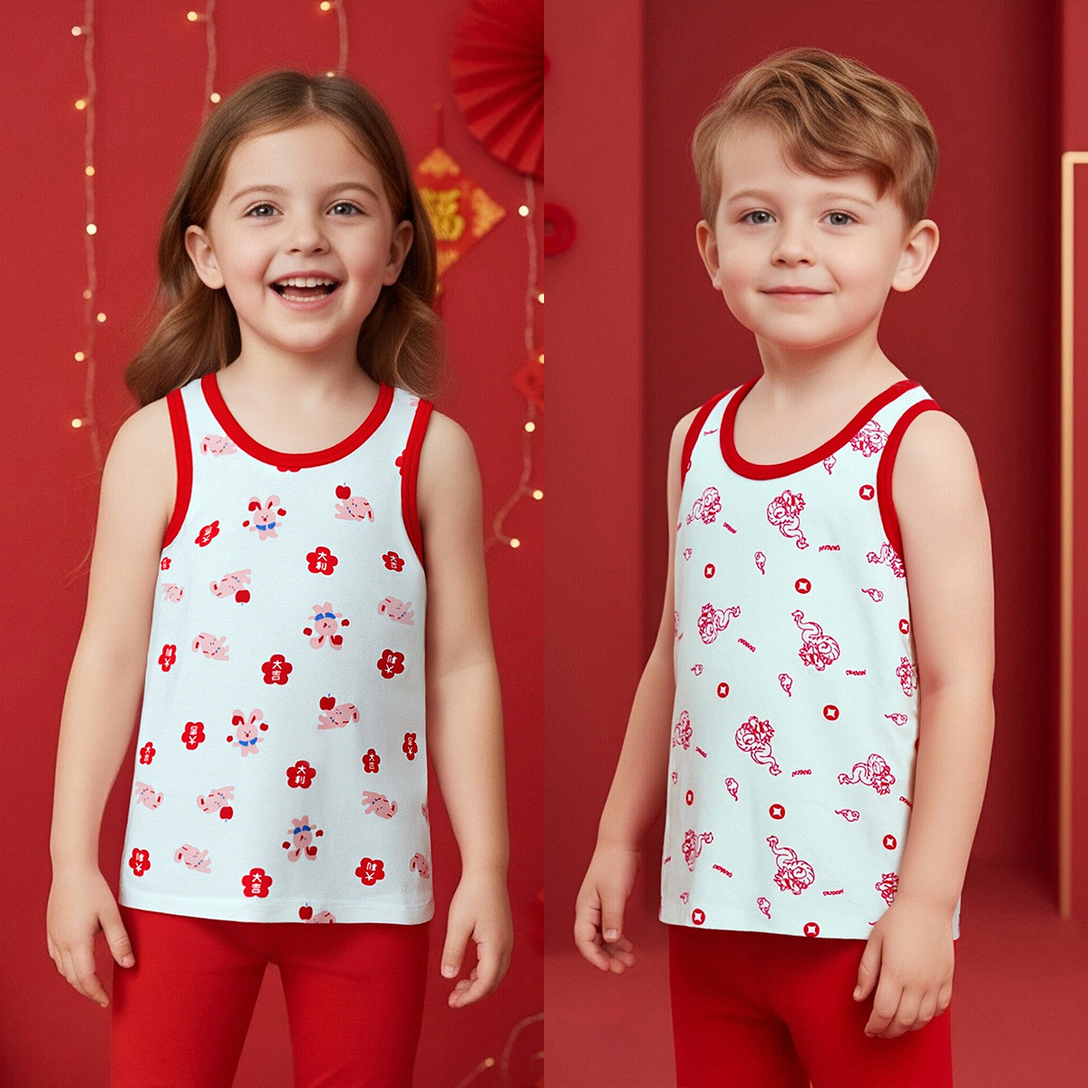 조디악 띠에 맞는 붉은색 아동용 조끼, 아기 신년복, 중대형 어린이용 이너웨어, 여아용 끈 조끼, 말띠 레드 조끼스토어 가기