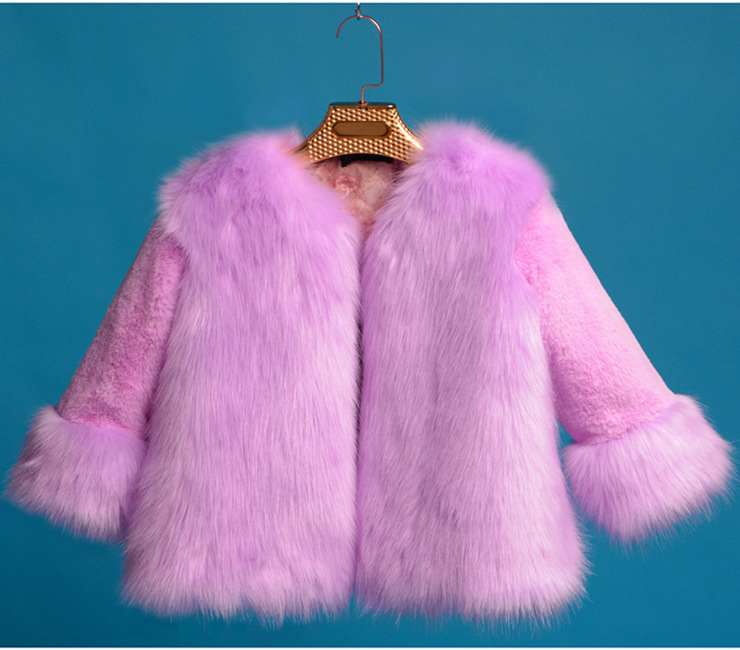 2018 새로운 아동복 인조 모피 자켓 스티칭 두꺼운 소형, 중형 및 대형 아동 자켓 여아 자켓 (3-10)스토어 가기