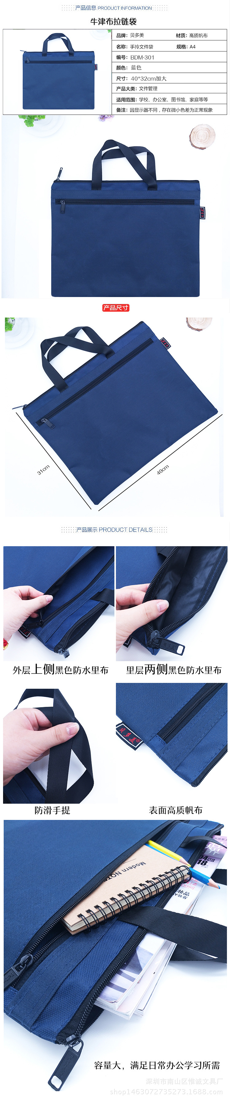 문서 가방 A4 사무용품 지퍼 가방 정보 가방 여성용 캔버스 핸드백 남성용 서류 가방 회의 가방스토어 가기