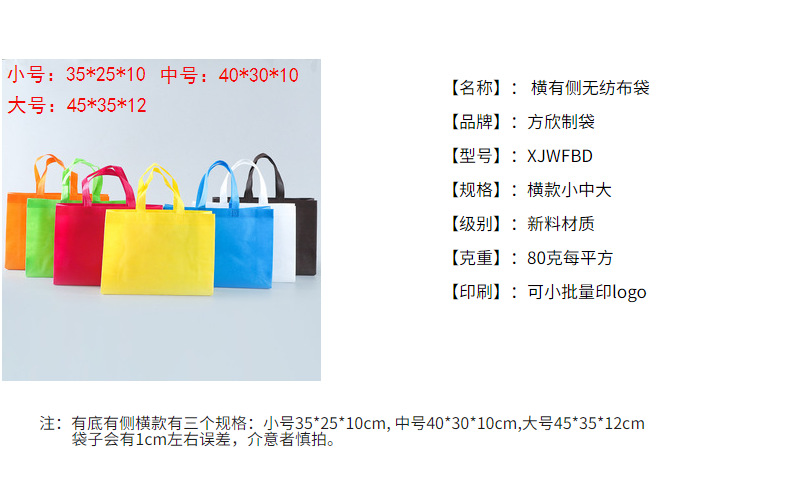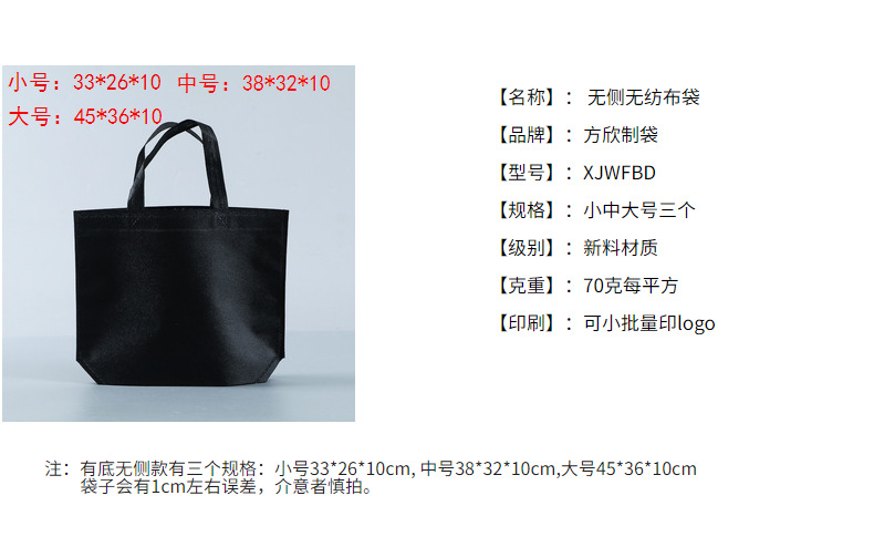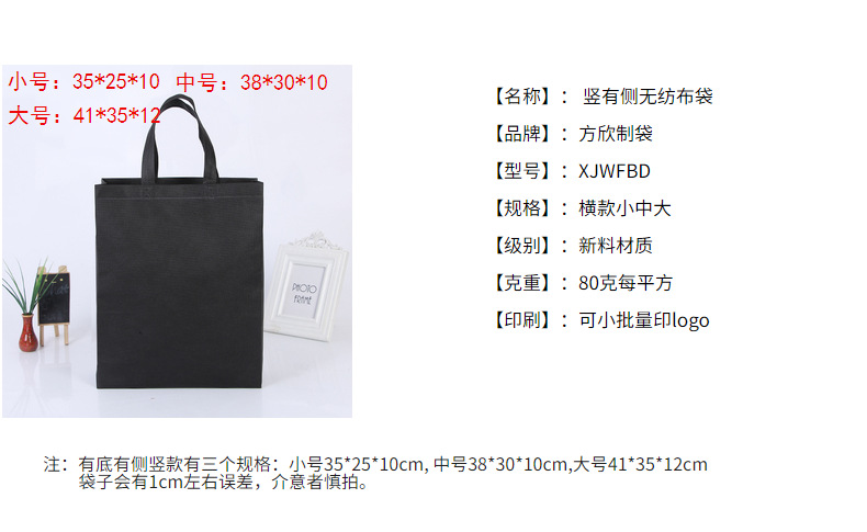 • 검정색, 측면 없음 중간 크기 38*32+10, PP 부직포