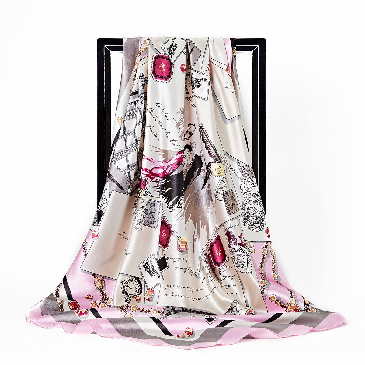 Gaohe 유럽과 미국의 새로운 인공 실크 90cm 사각형 스카프 여성용 스카프 대외 무역 선물 재고 AliExpress siwh