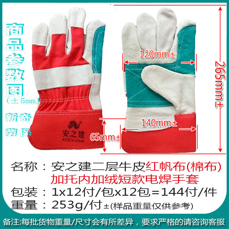 【商品名称】:安之建短款灰色二层牛皮电焊手套