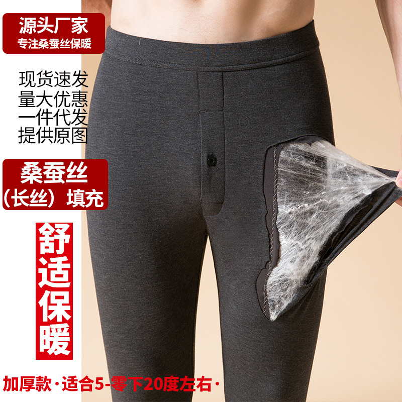 가을과 겨울 새로운 남성용 실크 웜 팬츠 두꺼운 하이 웨이스트 슬림핏 실크 코튼 팬츠 여성용 발 레깅스스토어 가기