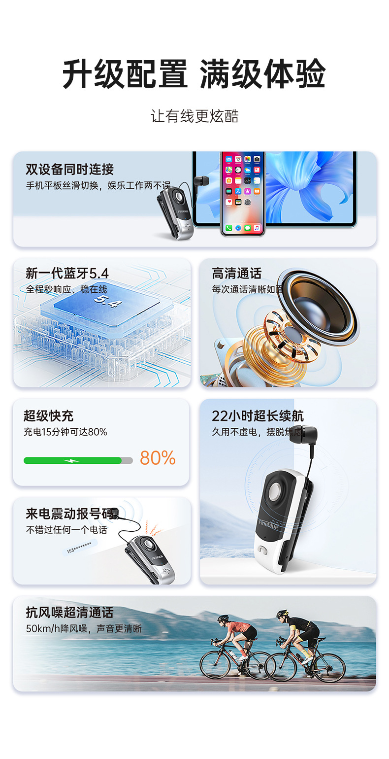 공장 직접 Jialan F960 국경 간 텔레스코픽 케이블 비즈니스 칼라 클립 게임 무선 모노 럴 블루투스 헤드셋