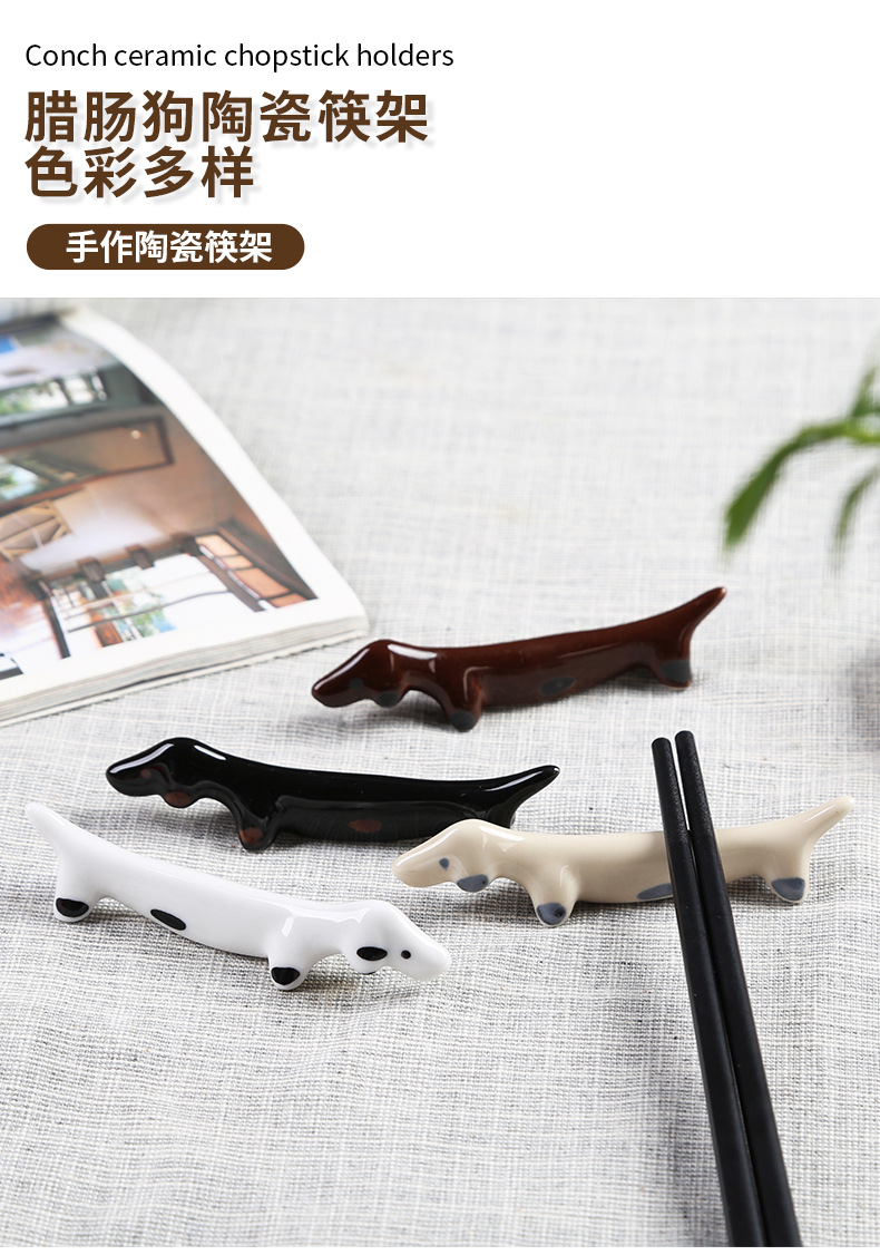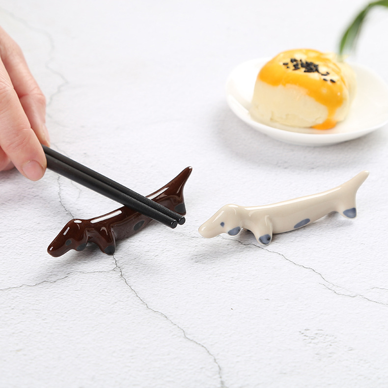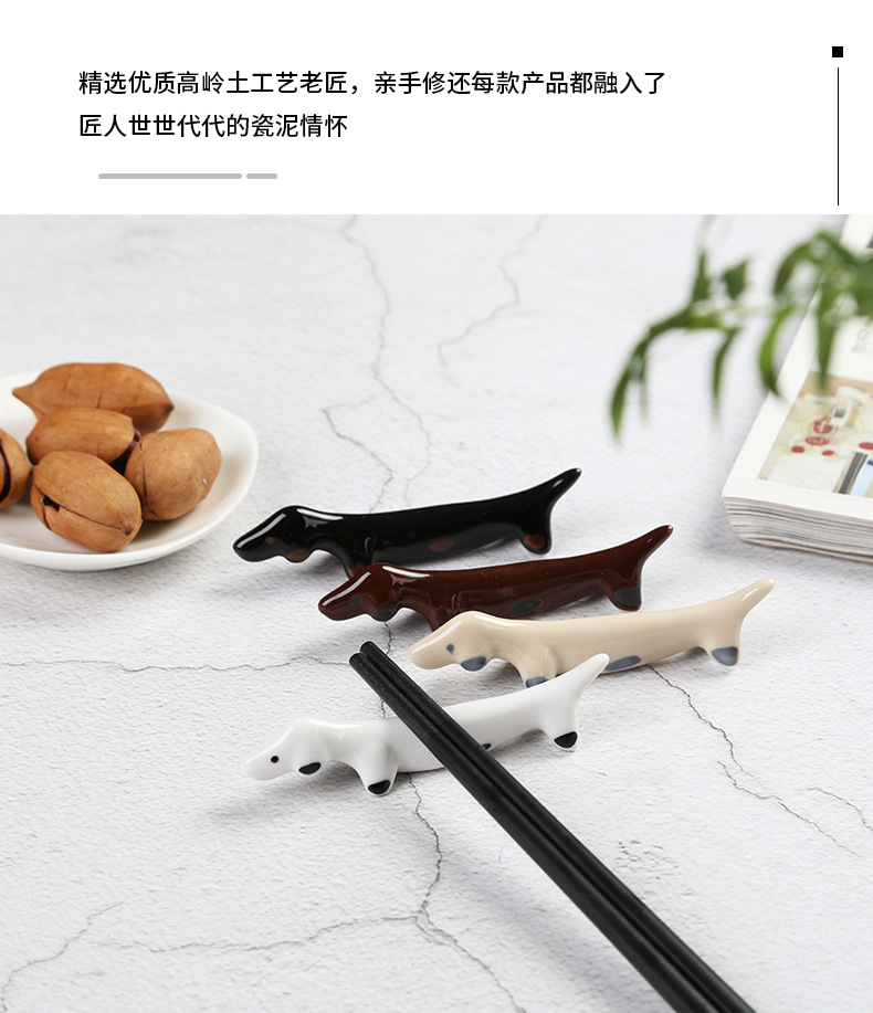 강아지 세라믹 장식품 일본 가정용 젓가락 랙 Wachshund 개 젓가락 홀더 젓가락 베개 귀여운 개 젓가락 홀더 펜 홀더